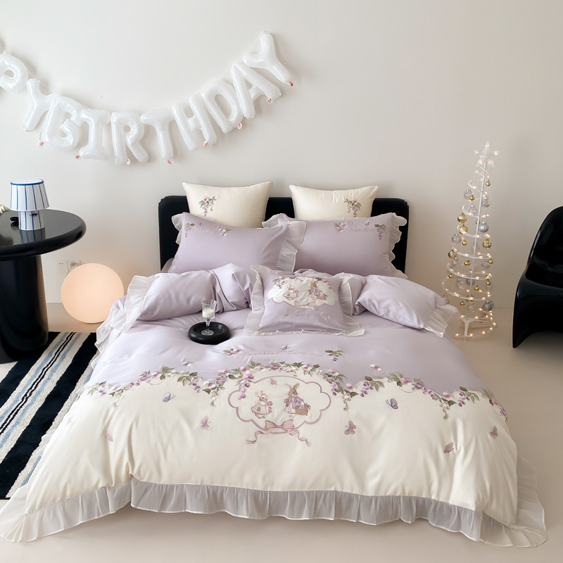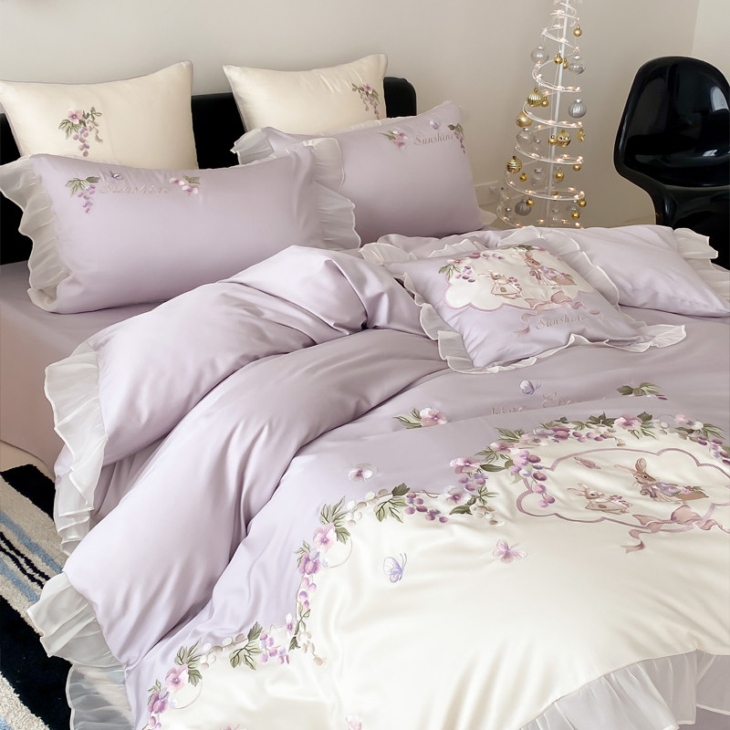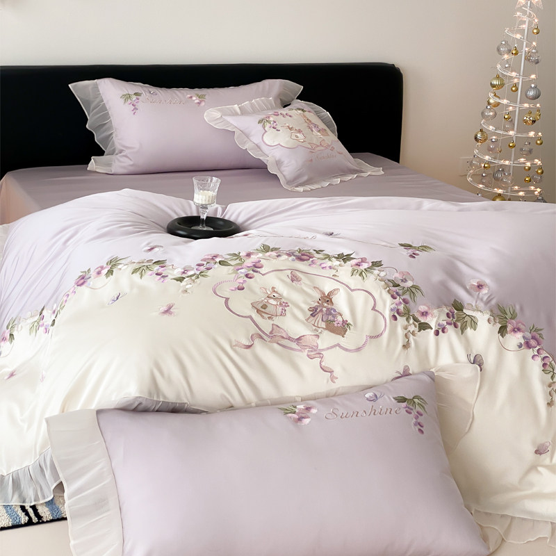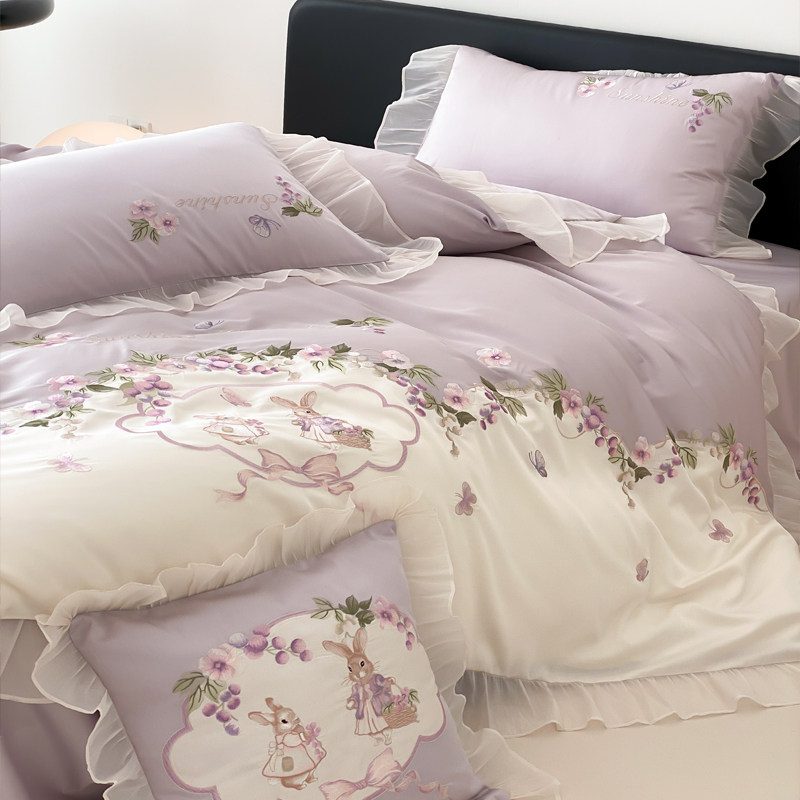 小清新少女风紫色花园兔100S兰精天丝四件套凉感冰丝被套床上用品