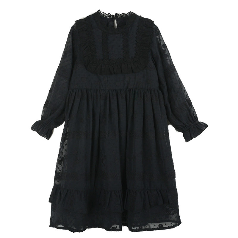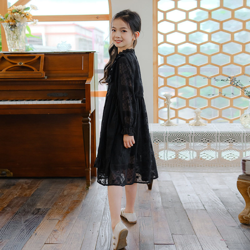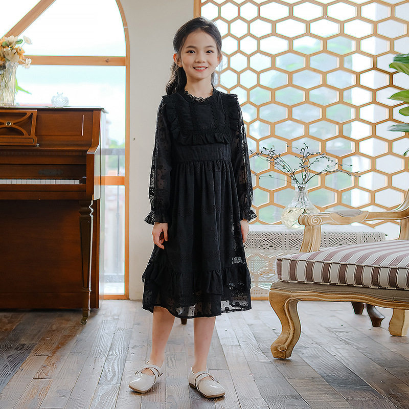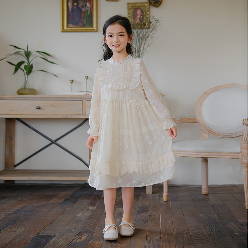 夏季薄款中大童蕾丝花边公主裙女童长袖连衣裙儿童雪纺长裙子春秋