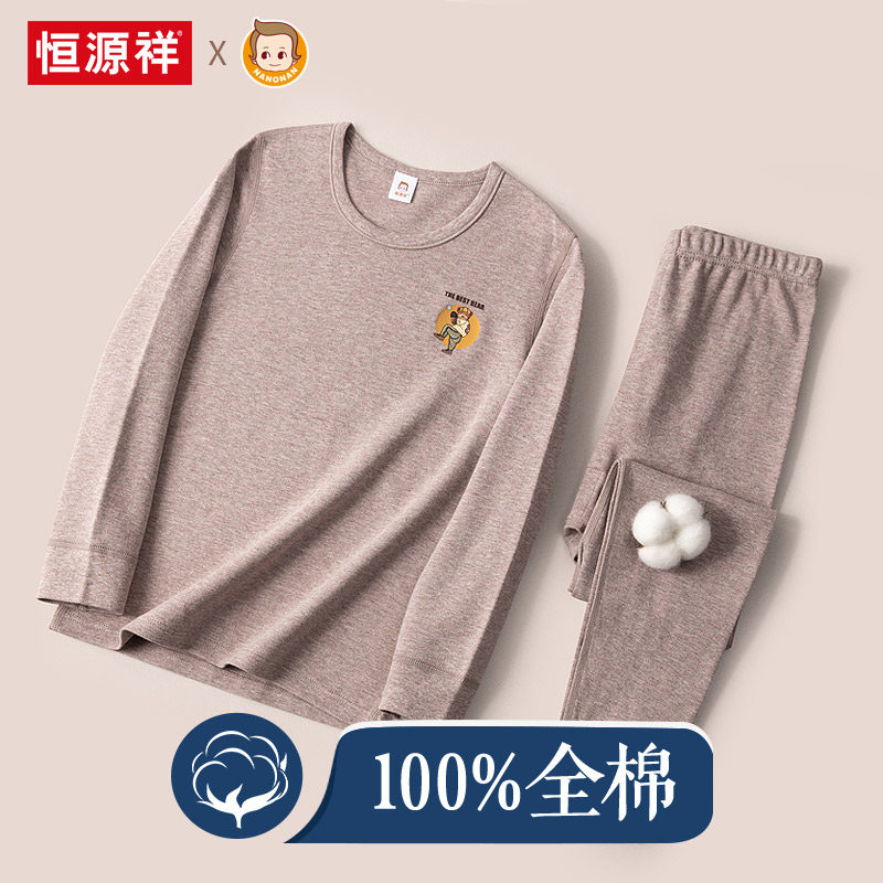 恒源祥男童秋衣套装棉毛衫儿童全棉秋衣裤男孩睡衣中大童纯棉内衣