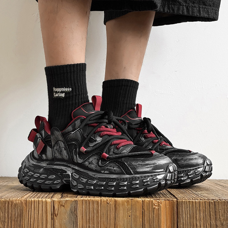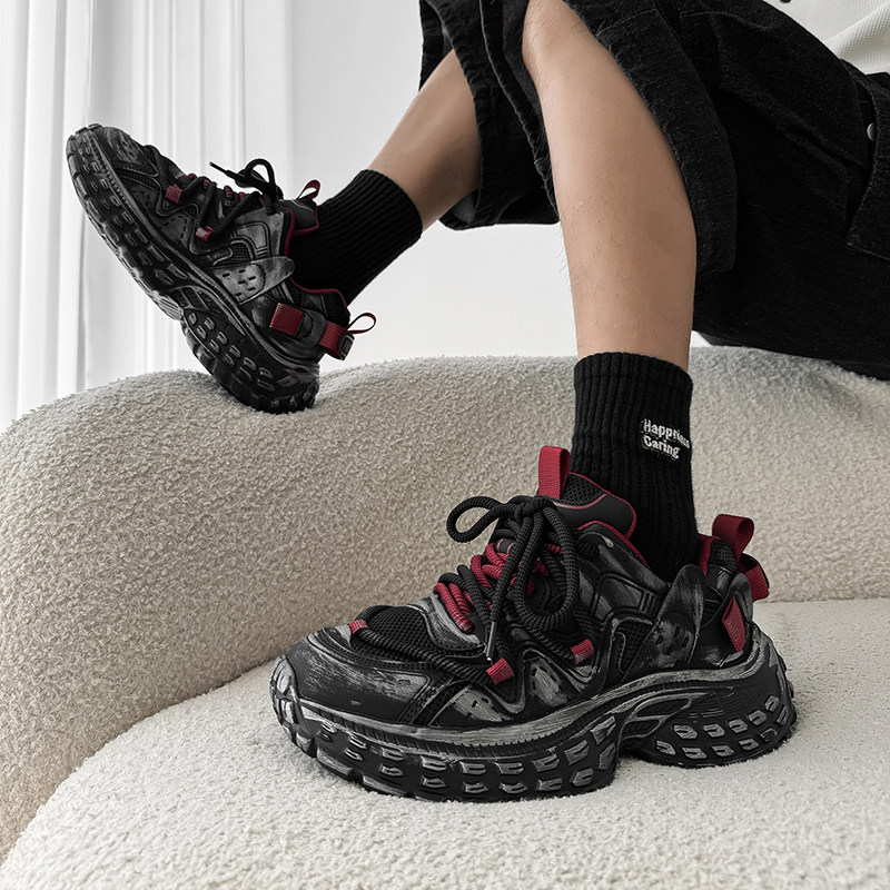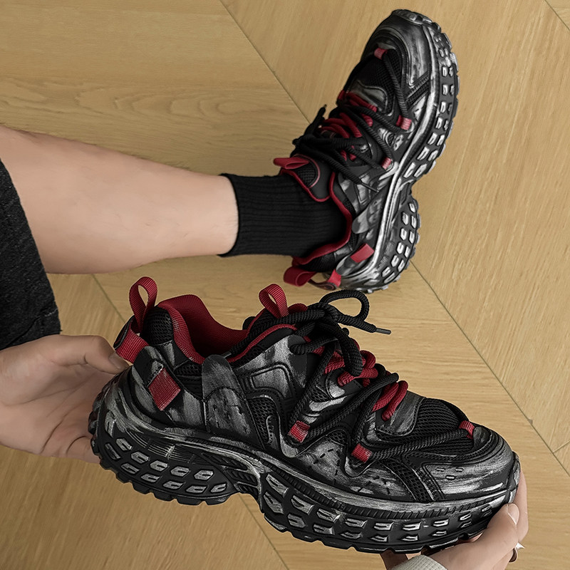 男鞋2026新款春今年流行爆款夏网面透气做旧高级感增高厚底老爹鞋