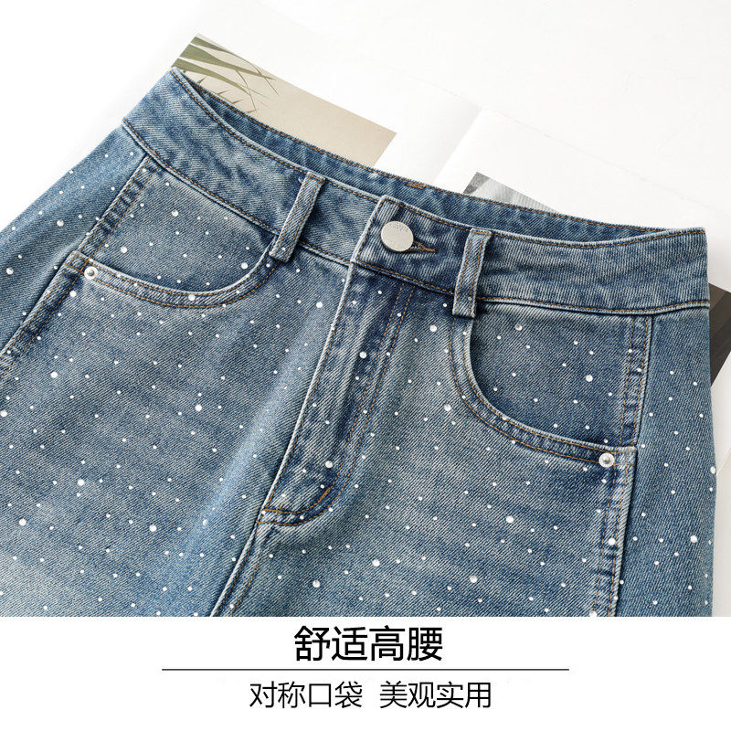 今年流行超火烫钻牛仔弯刀裤女裤子2026春夏季新款宽松休闲直筒裤
