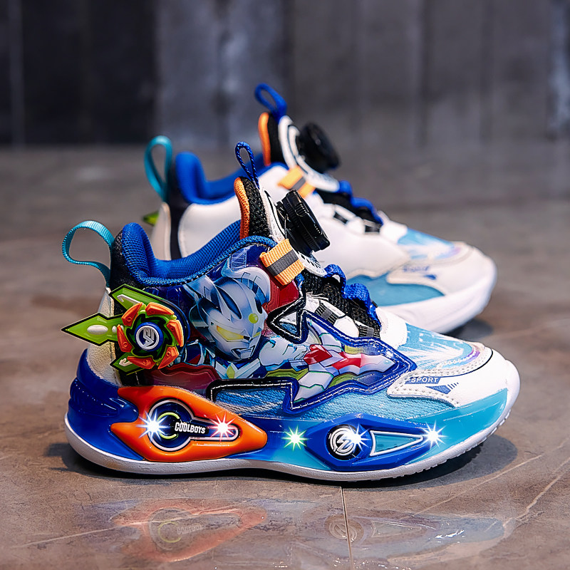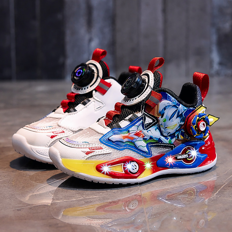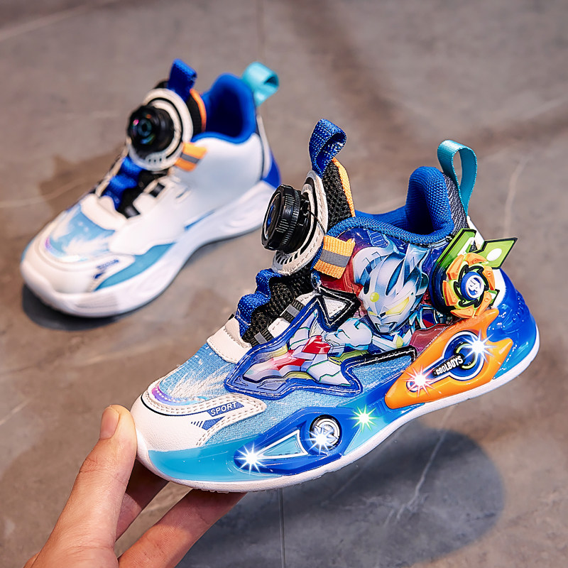 网面儿童鞋子男童带灯春秋2026新款透气运动鞋亮灯发光老爹鞋男孩