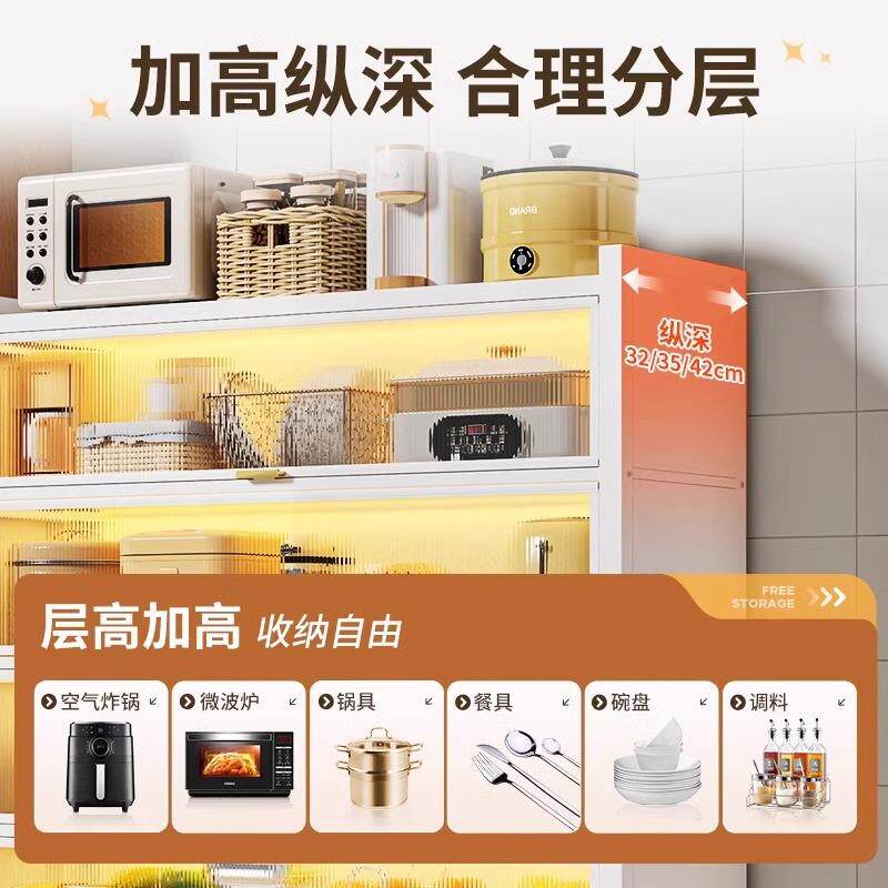 厨房置物架落地多层收纳柜子微波炉家用带门多功能橱柜防尘储物柜