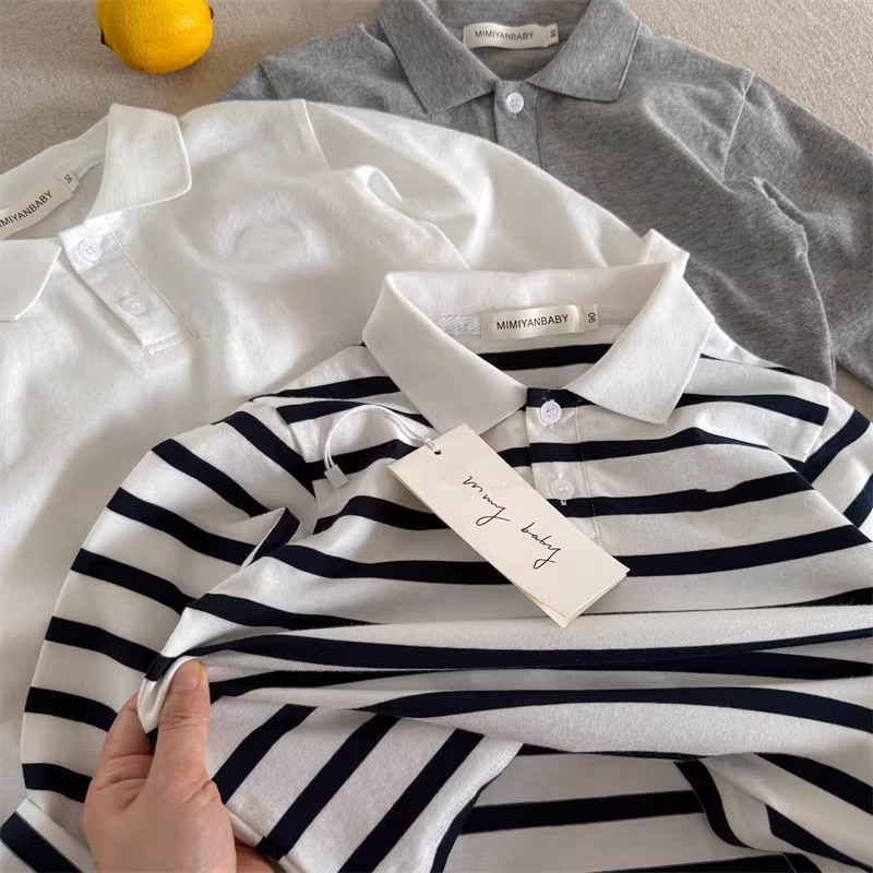 男童长袖T恤翻领透气纯棉2026春A类宝宝POLO衫春秋儿童打底衫条纹