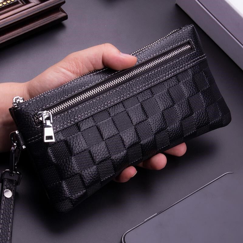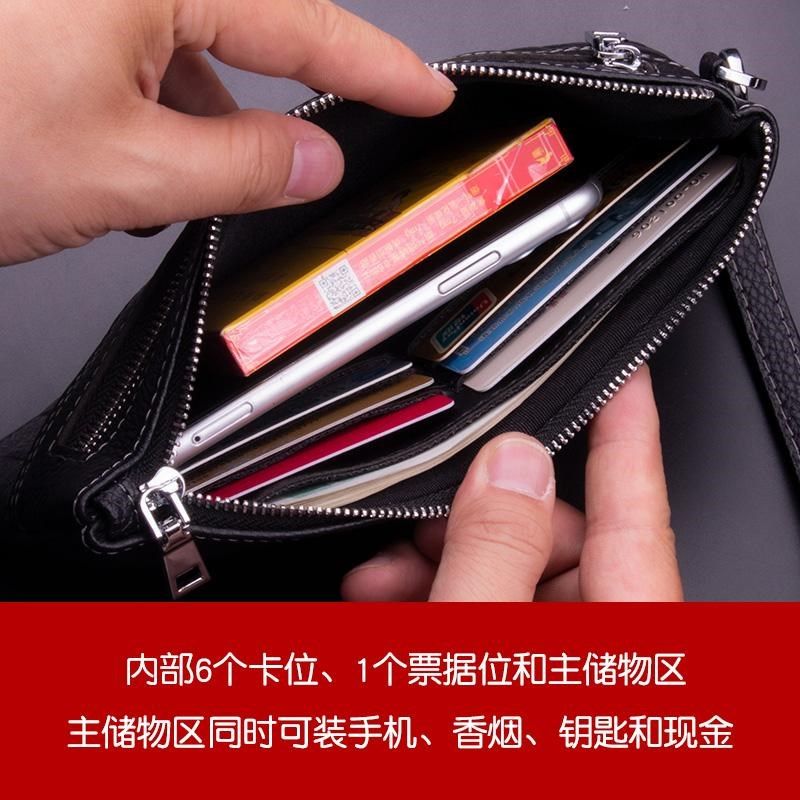 新款手拿包男士真皮钱包男款手挽包小号大容量休闲长款牛皮手机包