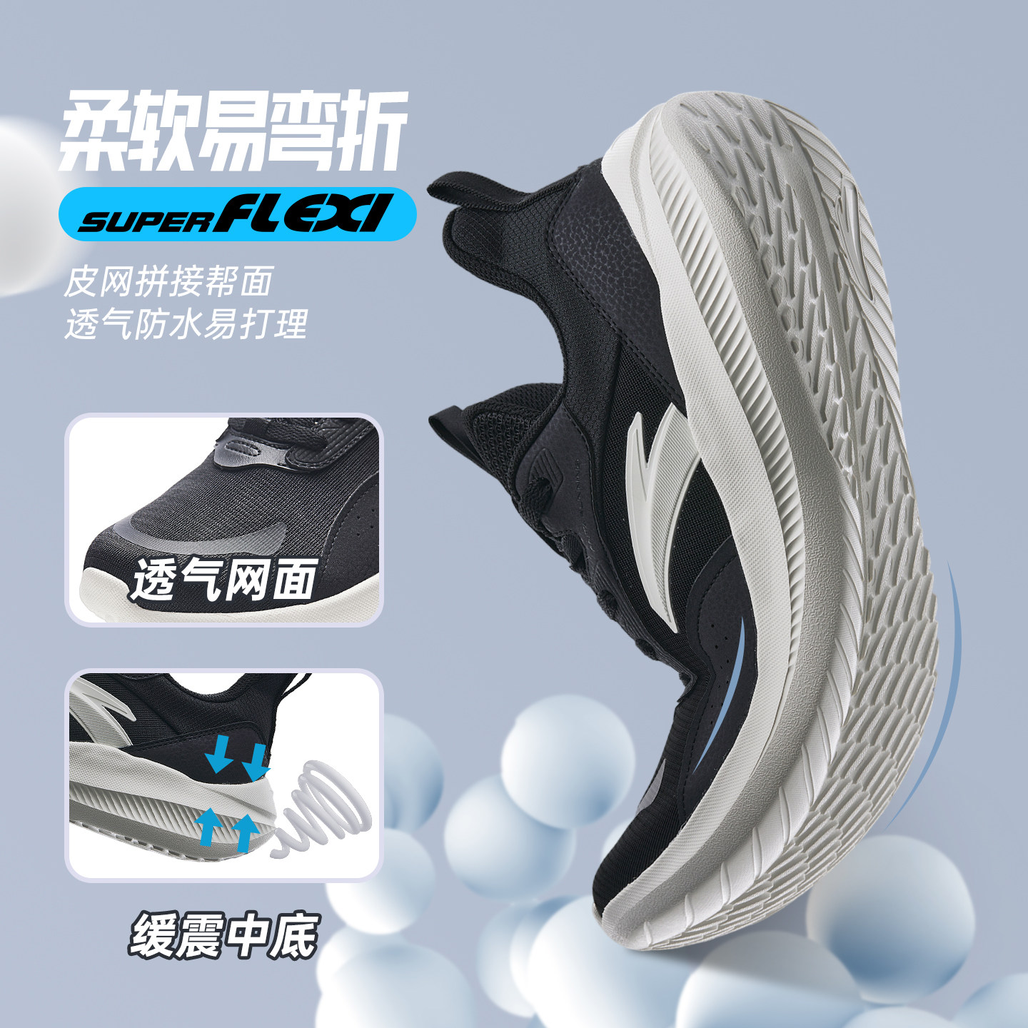 安踏男鞋运动鞋2026新款夏季黑色鞋子透气跑步鞋男士网面休闲鞋