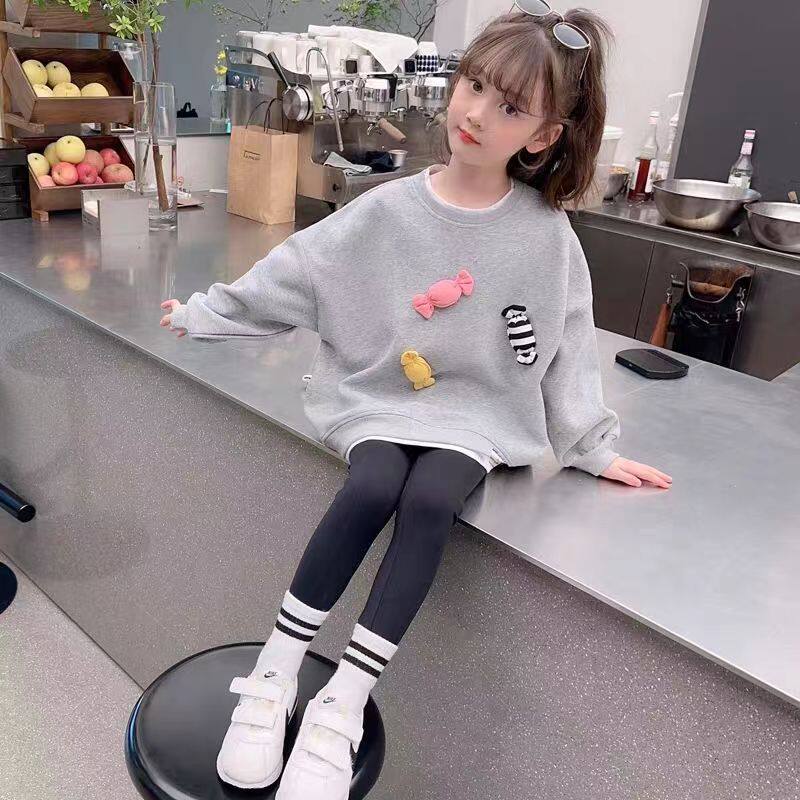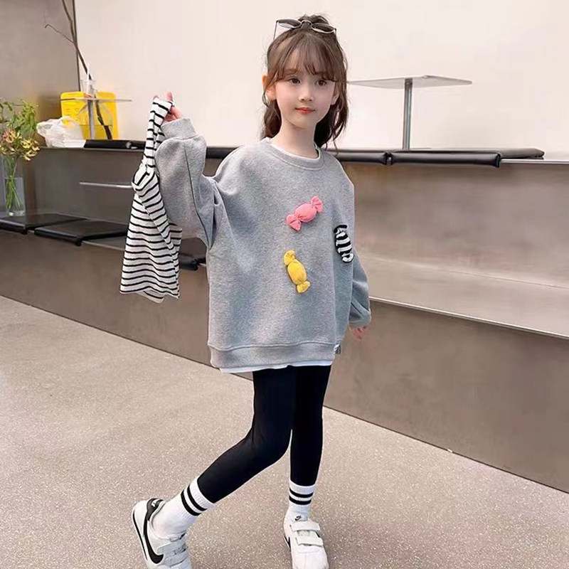 女童卫衣秋装2025小女孩宽版灰色长袖春秋中长款儿童立体装饰上衣