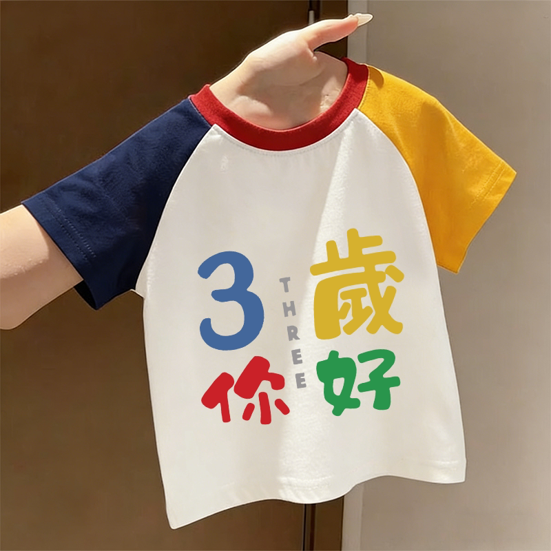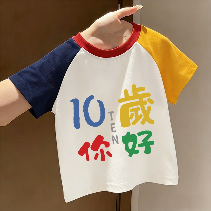 9岁你好~夏季男女童新款插肩纯棉圆领洋气T恤上衣潮可爱短袖卡通