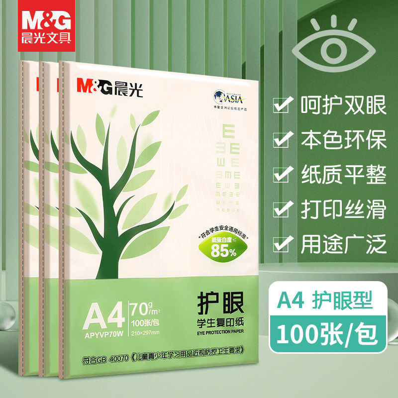 晨光A4护眼打印纸学生画画草稿本实惠装袋装500张手写草稿办公用