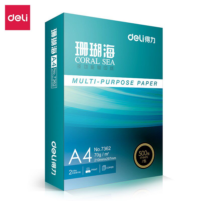 得力珊瑚海打印纸复印纸A4纸学生作业本草稿纸办公图文资料档案纸