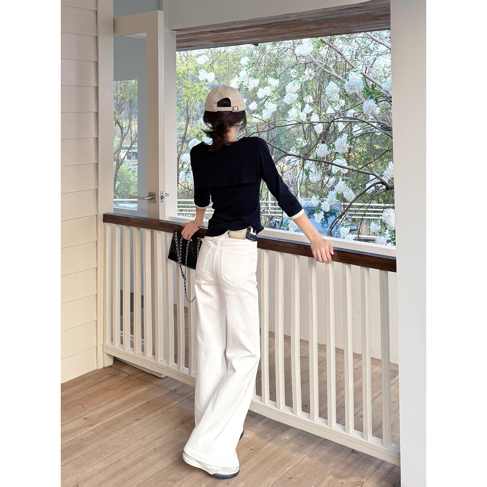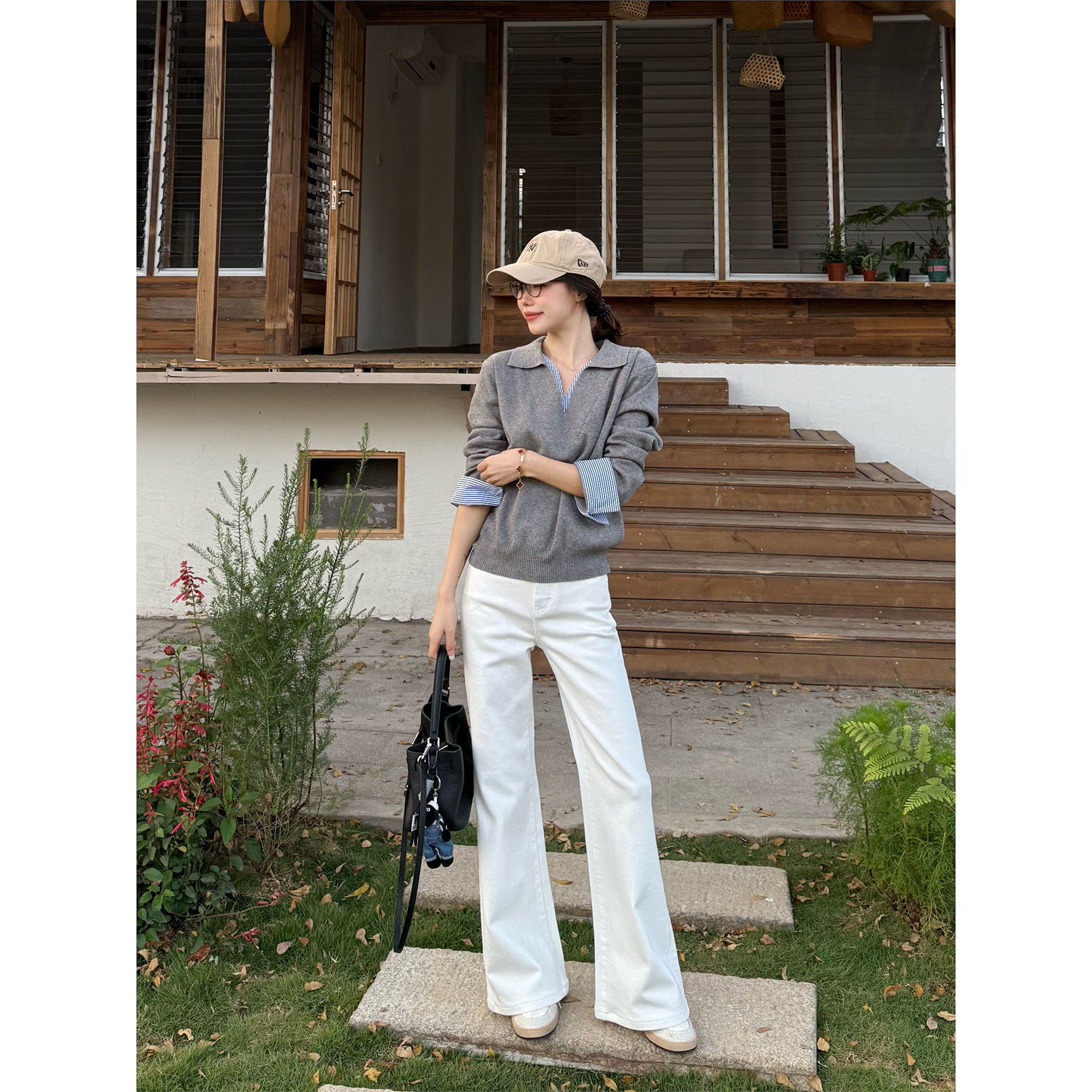 311线报网描述:王家有鱼春季新款不贴腿微喇牛仔裤女裤子