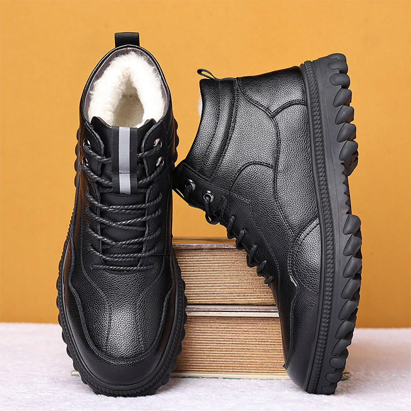 冬天老人保暖二棉鞋男款冬季加绒加厚防滑雪地靴男士真皮鞋子男鞋
