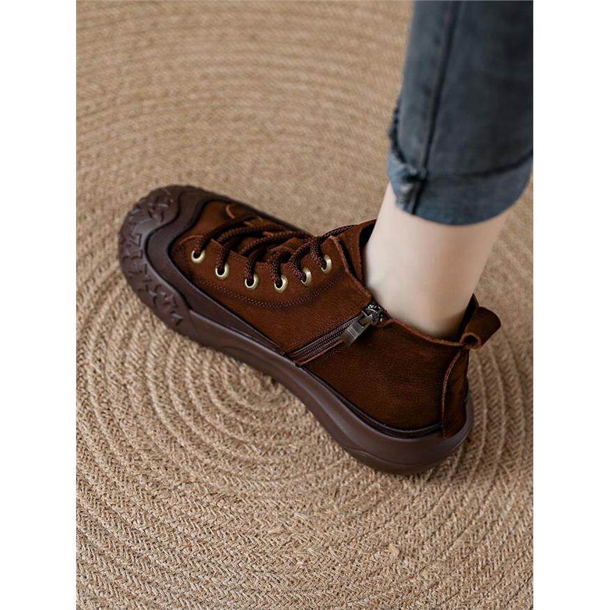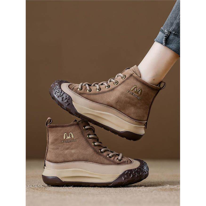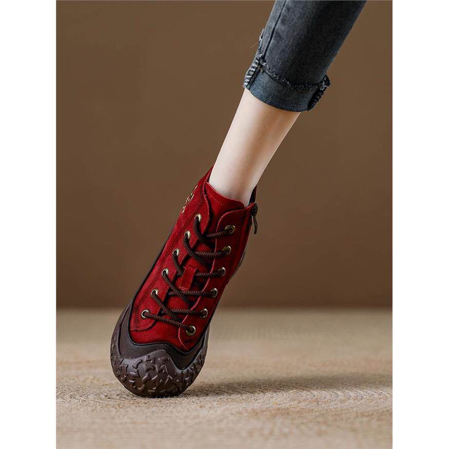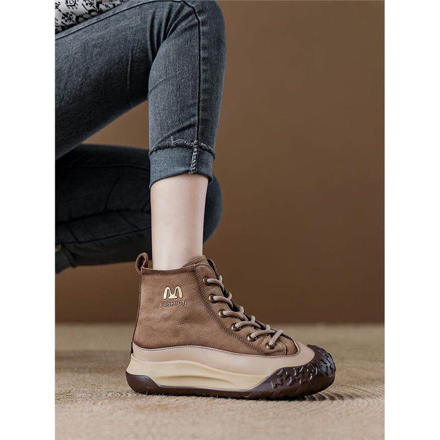 真皮覆古运动马丁靴女款头层牛皮红色女靴短靴厚底松糕高帮休闲鞋