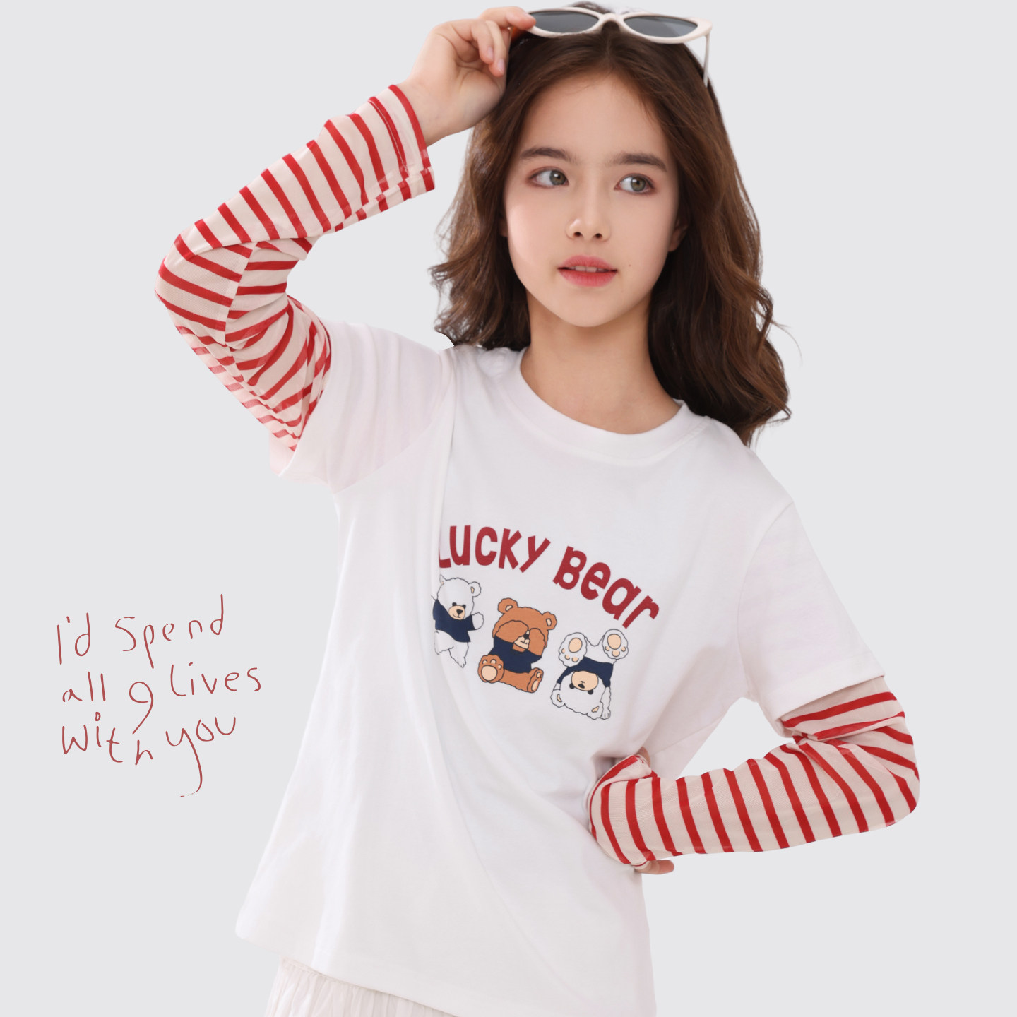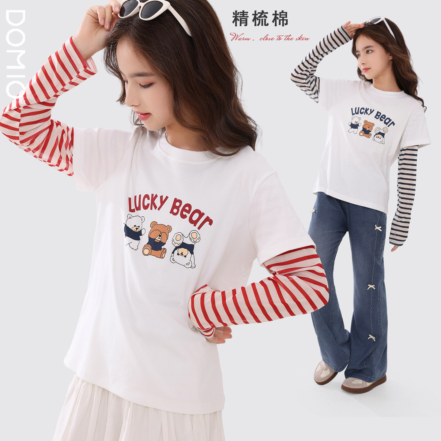 女童长袖T恤春装2026新款儿童打底衫休闲青少年秋季上衣卡通童装