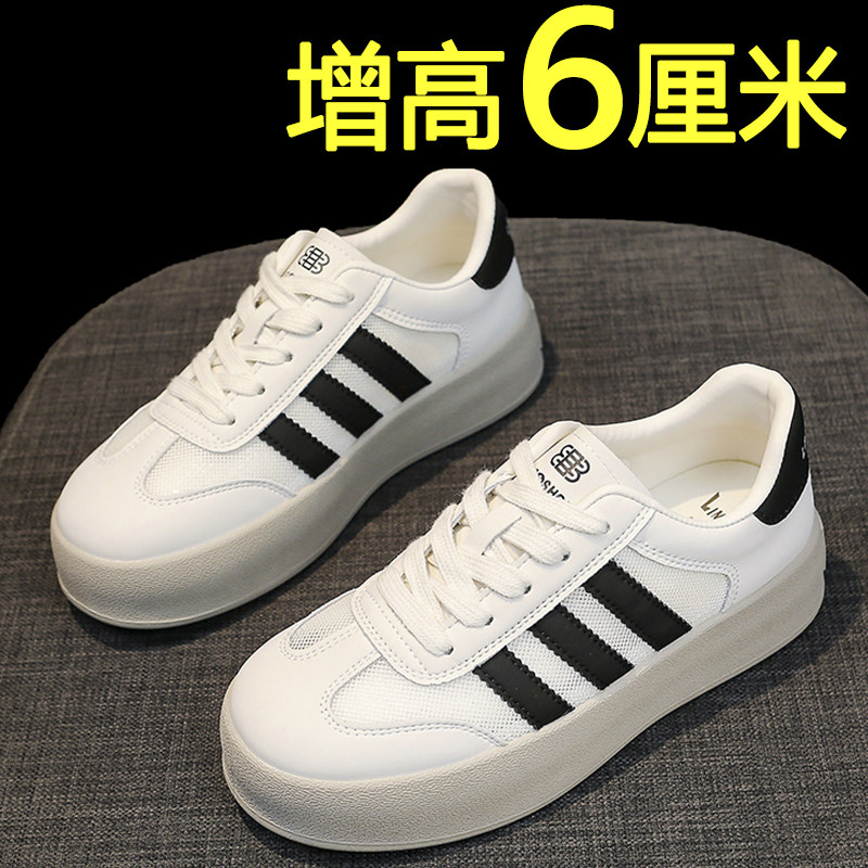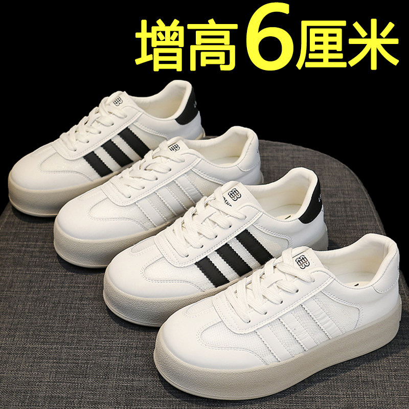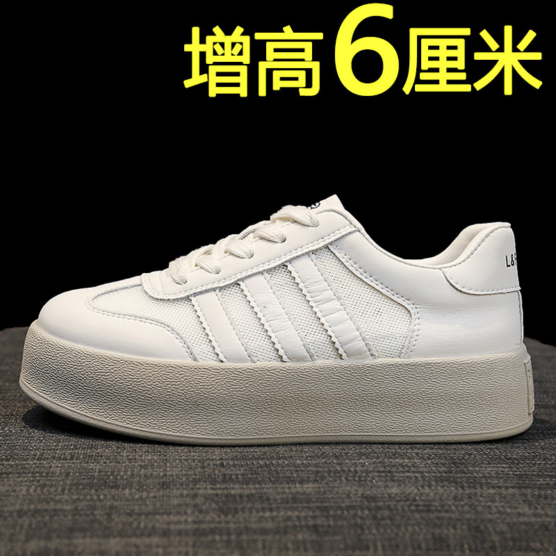 德训鞋女款2026新款夏季网面透气厚底小白鞋百搭内增高休闲板鞋