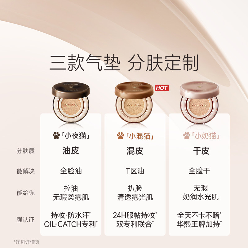 【会员小美盒】卡姿兰小奶猫夜猫气垫遮瑕持久不脱妆素颜霜小样