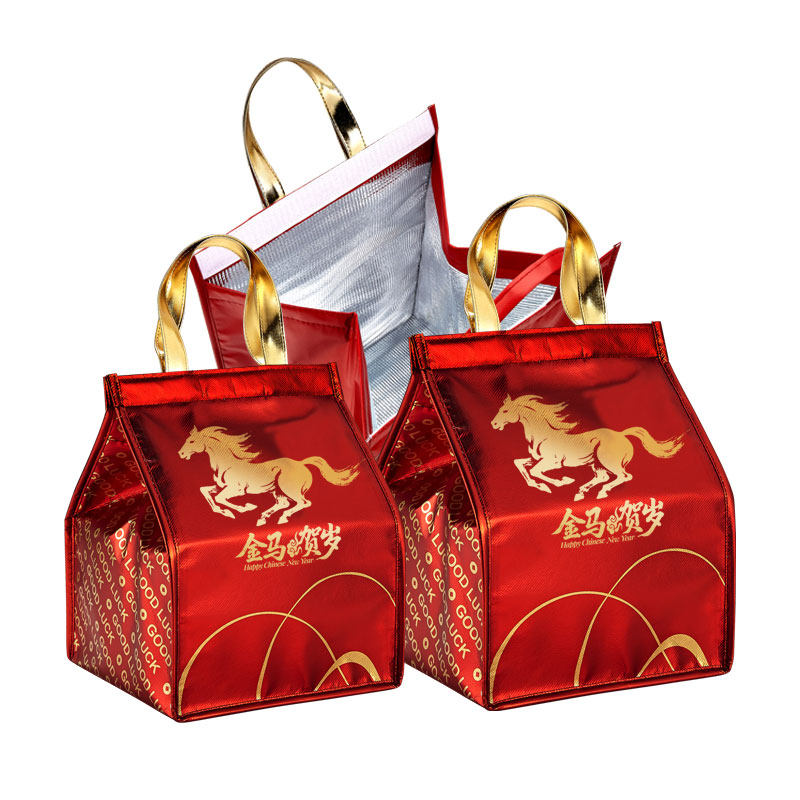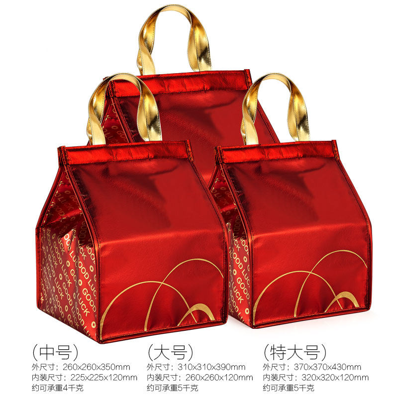 新春年货红色礼品包装马口铁盒酒店保鲜大容量铝膜保温袋礼包大号