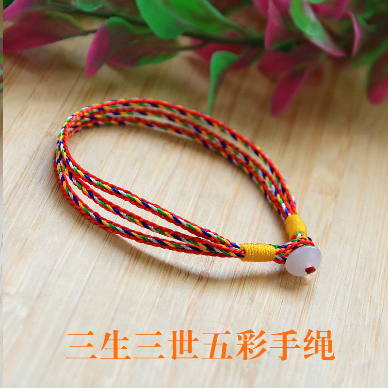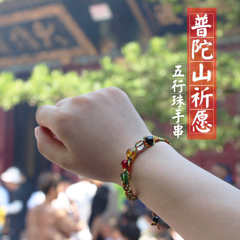 【普陀山】五行珠水晶五彩绳手链三生情侣手工编织手绳金榜题名红