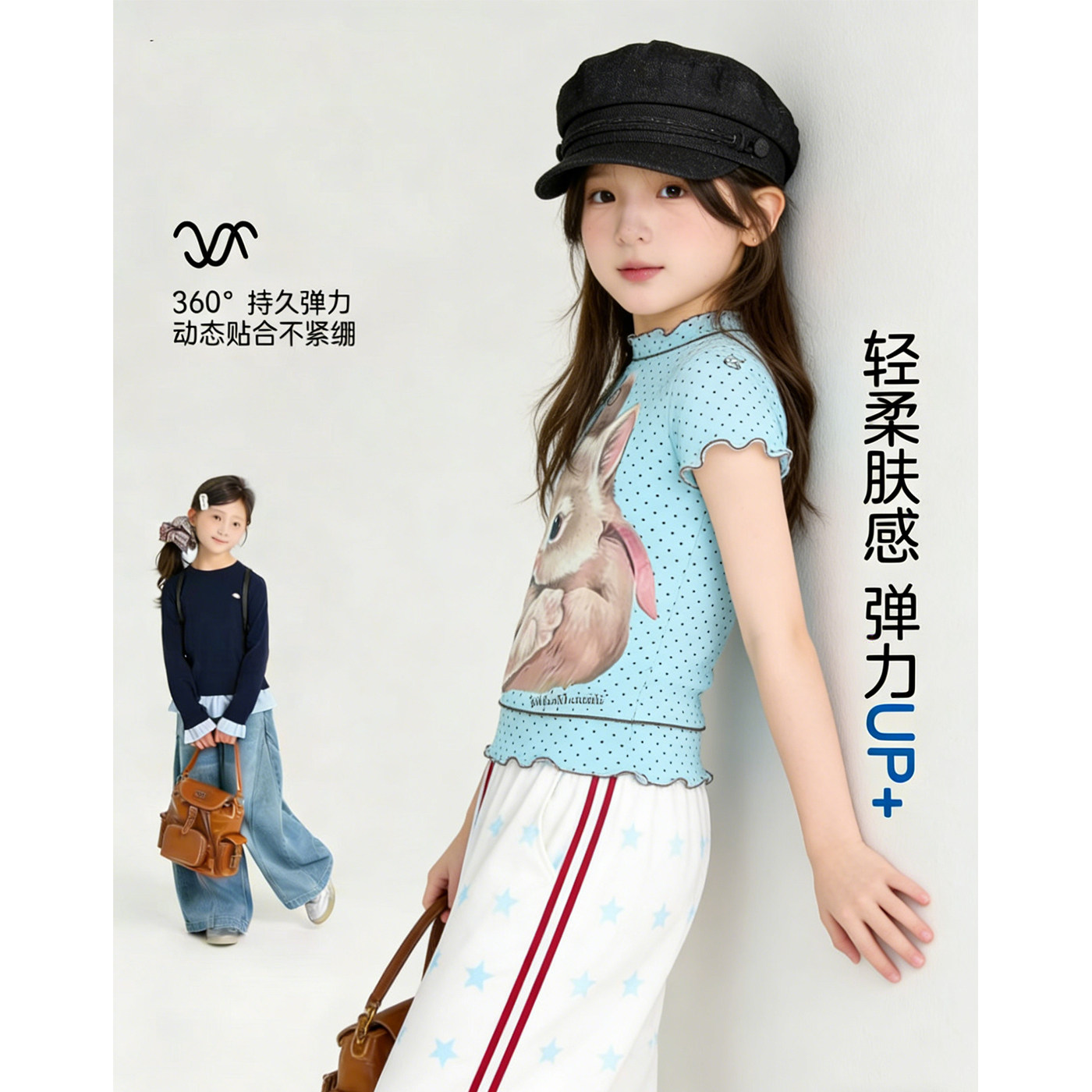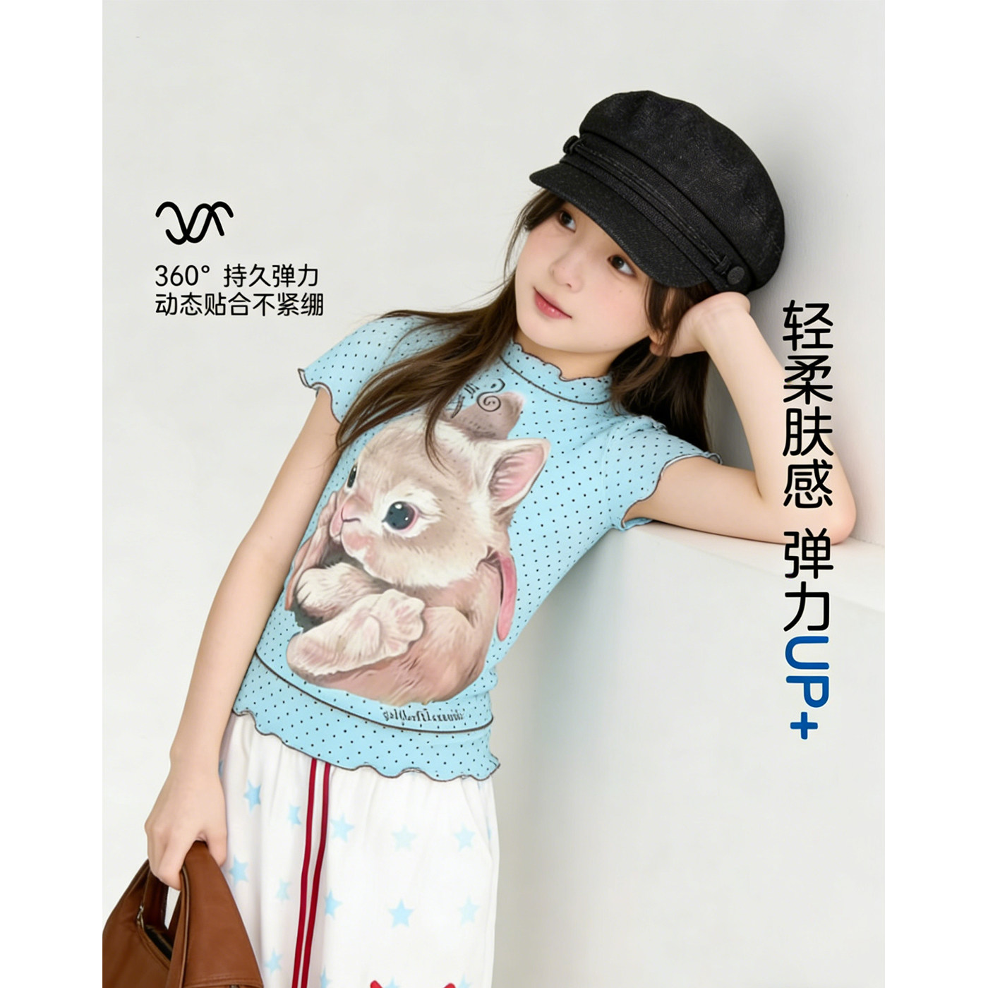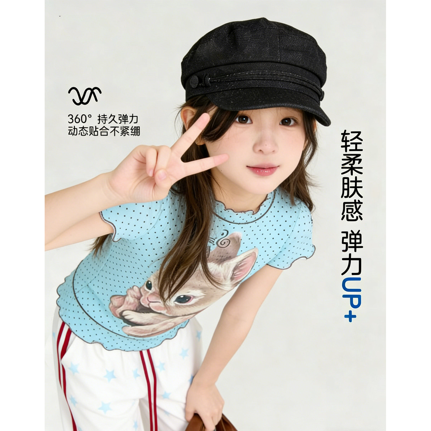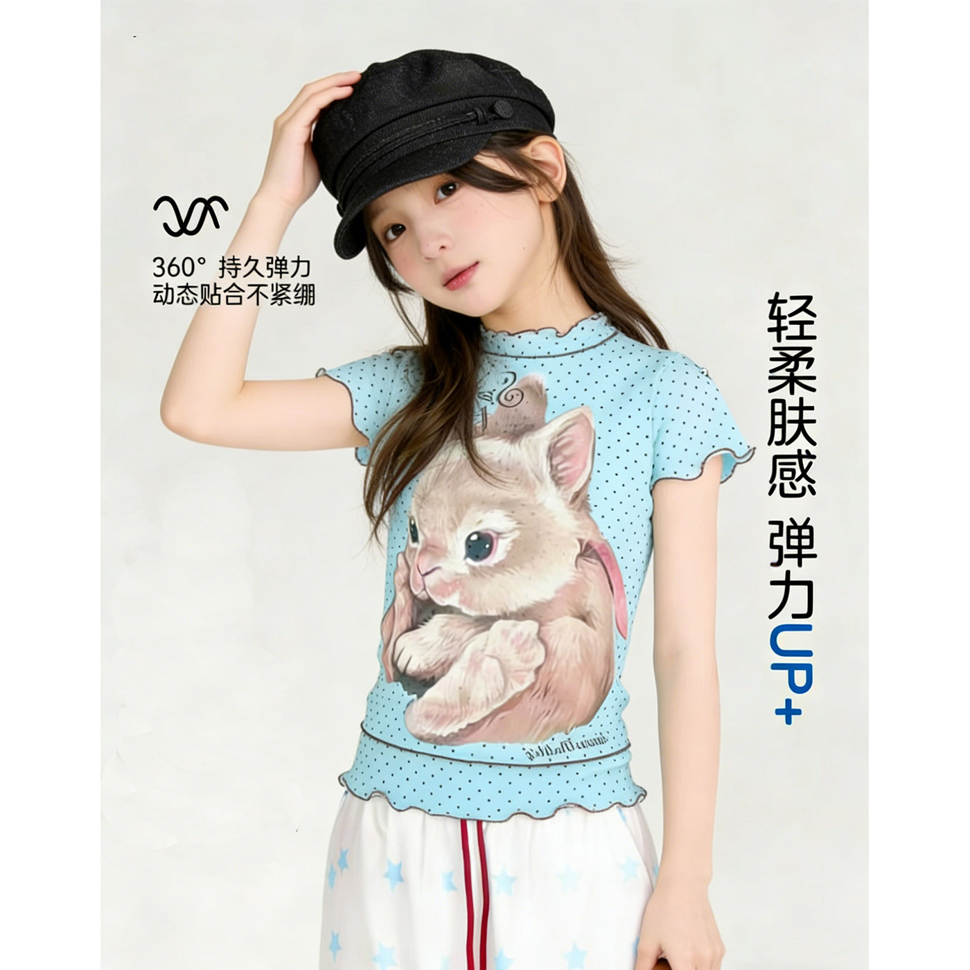 女童短袖T恤2026新款穿搭卡通印花木耳边夏天衣服波点中大童上衣