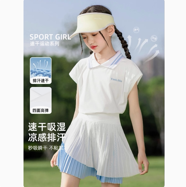 女童速干半身裙子儿童运动冰丝薄款羽毛球训练短裙女大童网球裙裤