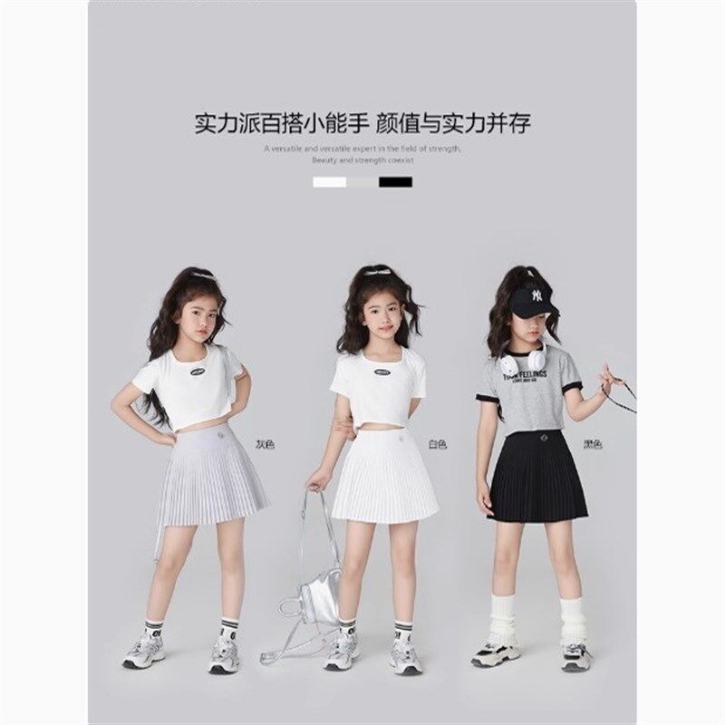 女童半身裙运动速干裙子夏季羽毛球网球裙儿童百褶裙夏装冰丝短裙