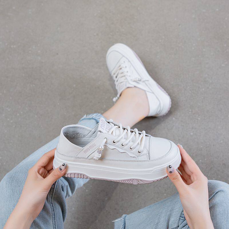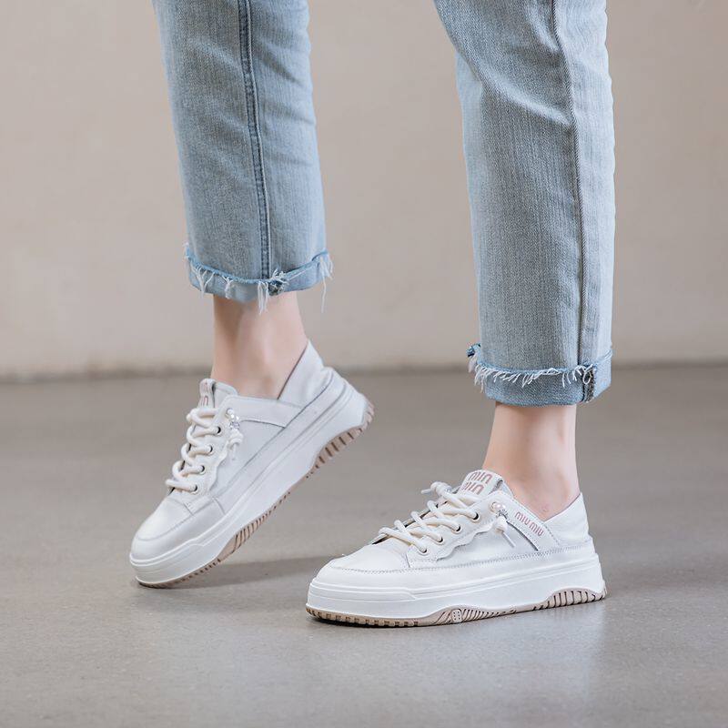 头层牛皮小白鞋子女2025新款爆款女鞋透气百搭一脚蹬两穿休闲板鞋