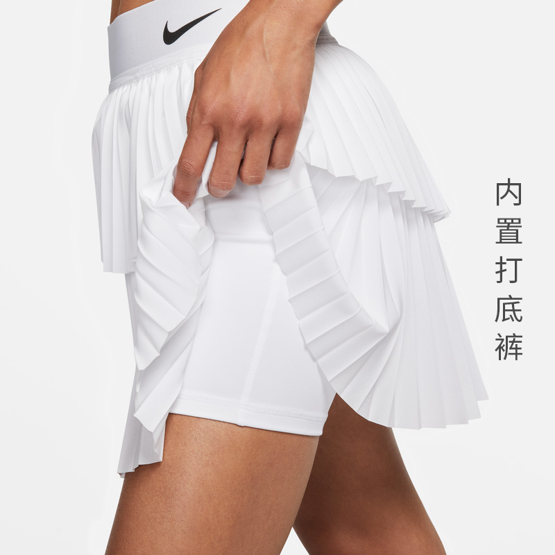 Nike耐克女子专业网球裙运动半身裙白色百褶裙短裙休闲透气网球服