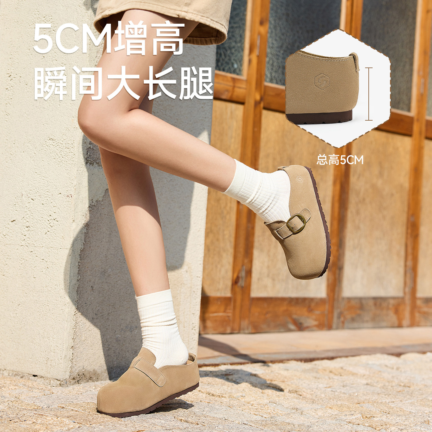 UBZ 宽版防水厚底包头内增高勃肯半拖女2026春新款外穿博肯懒人鞋