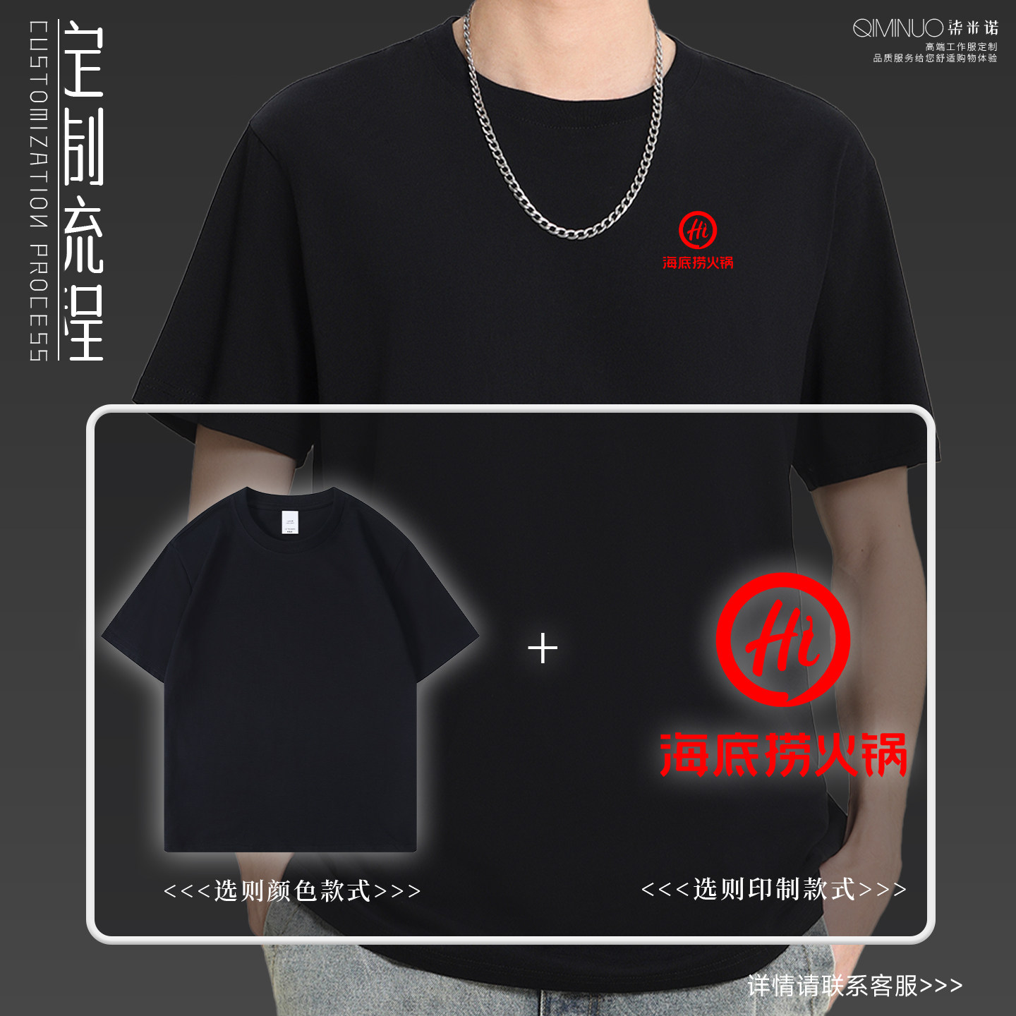 餐饮服务员工作服定制logo火锅小碗菜奶茶店纯棉圆领短袖T恤工装