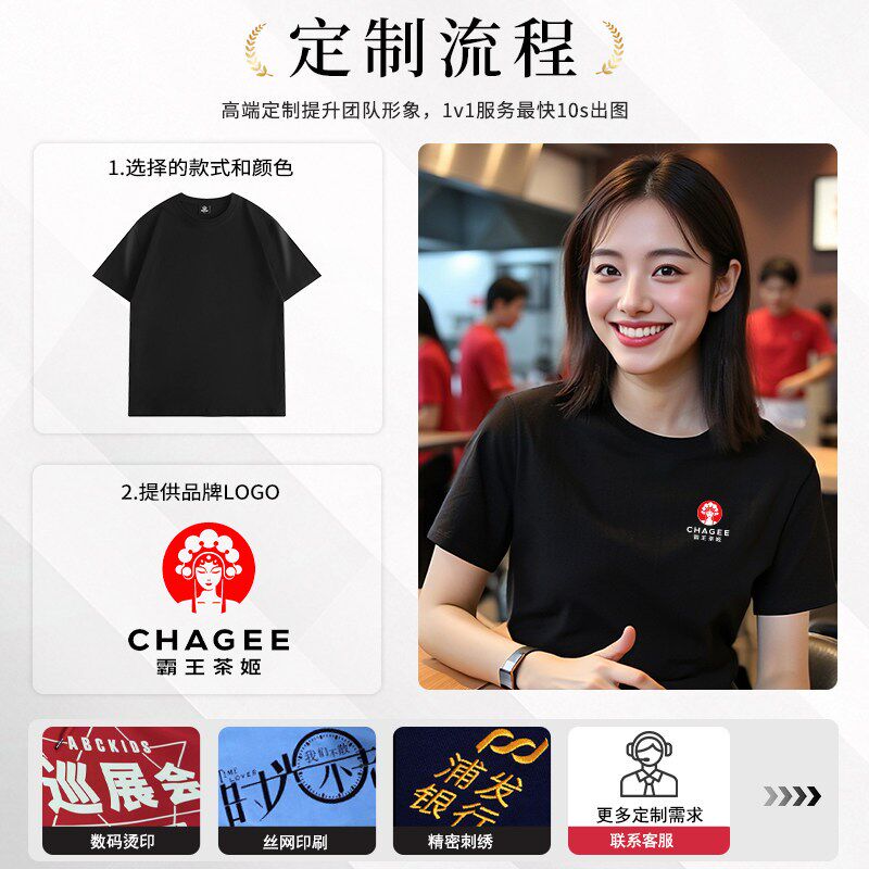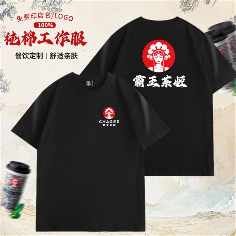 极速餐饮工作服定制纯棉圆领T恤夏奶茶咖啡火锅Q烧烤服务员工装印