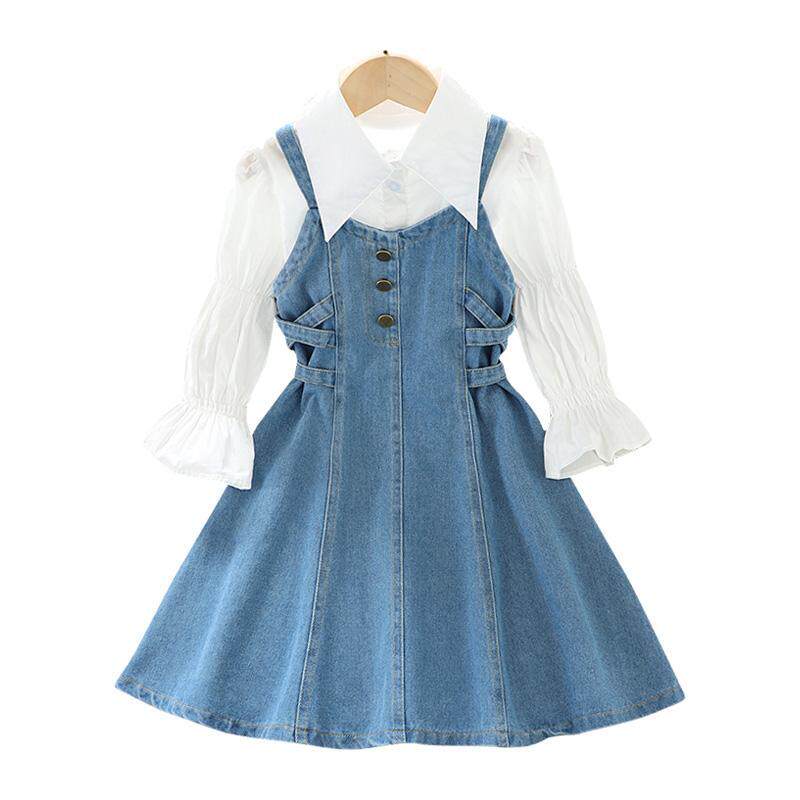 女童牛仔连衣裙2026春季新款童装背带裙女大童洋气春秋套装裙子