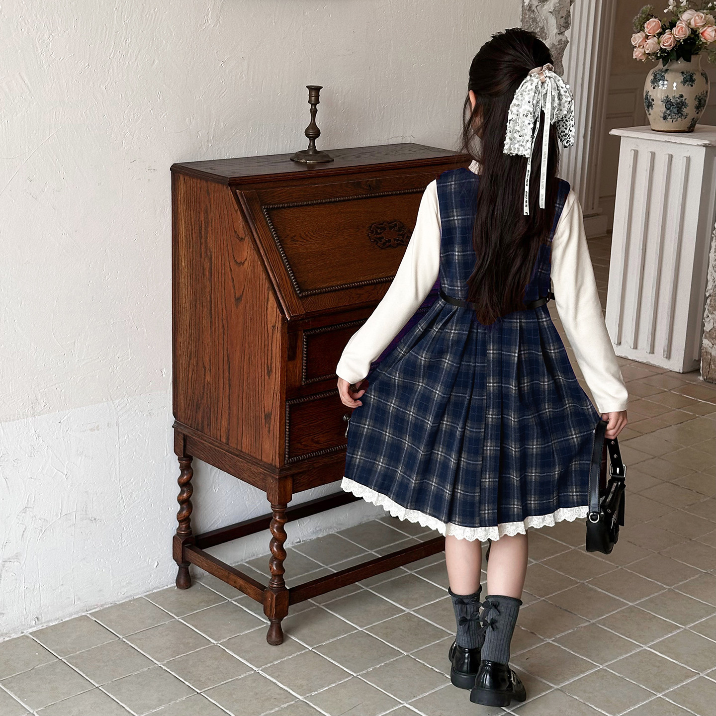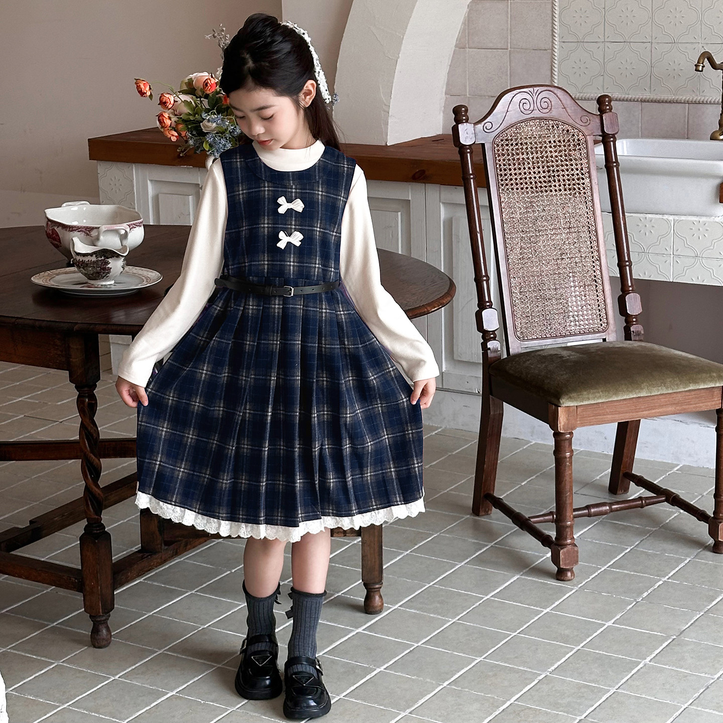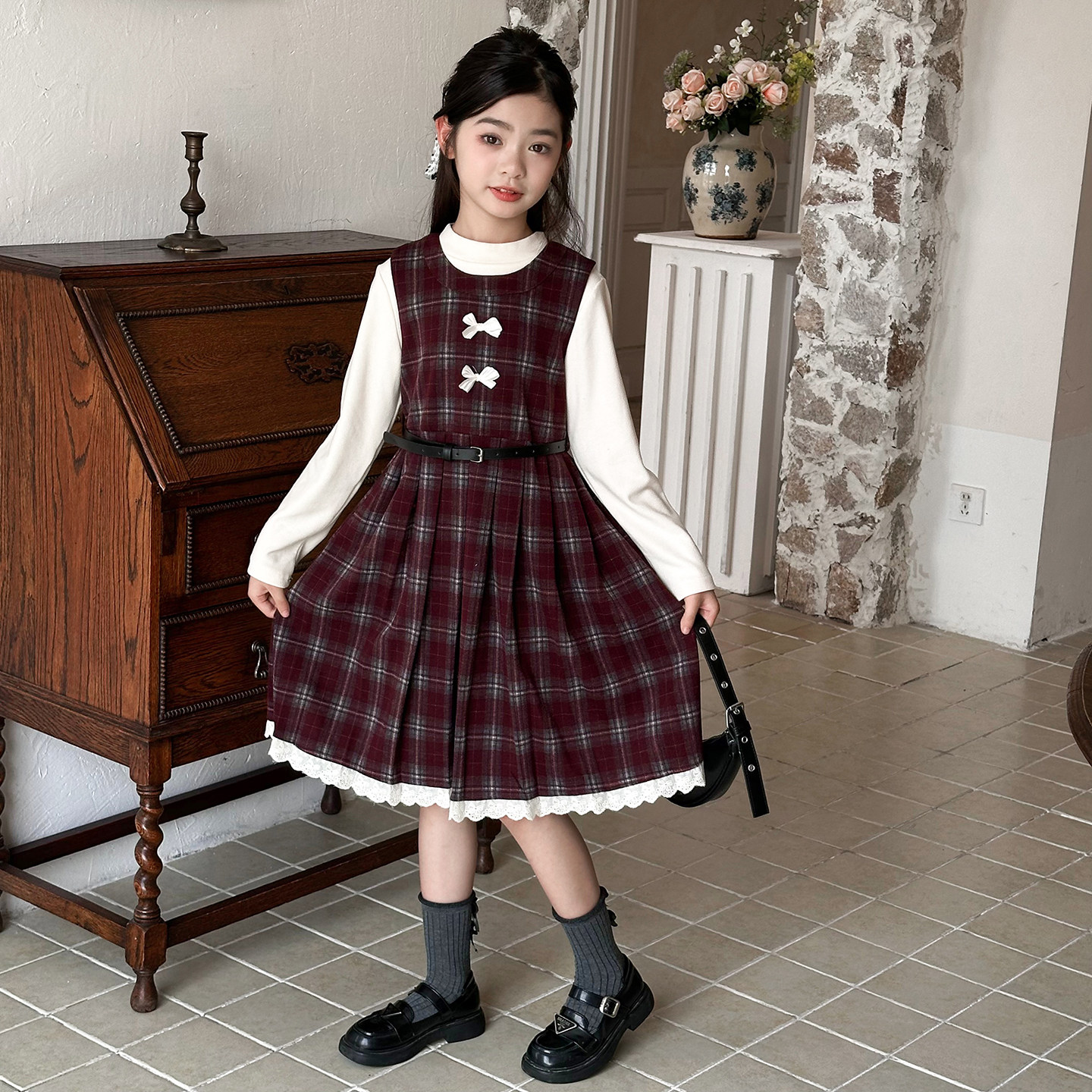女童春秋款连衣裙2026新款大儿童春装洋气格子公主裙春季套装裙子