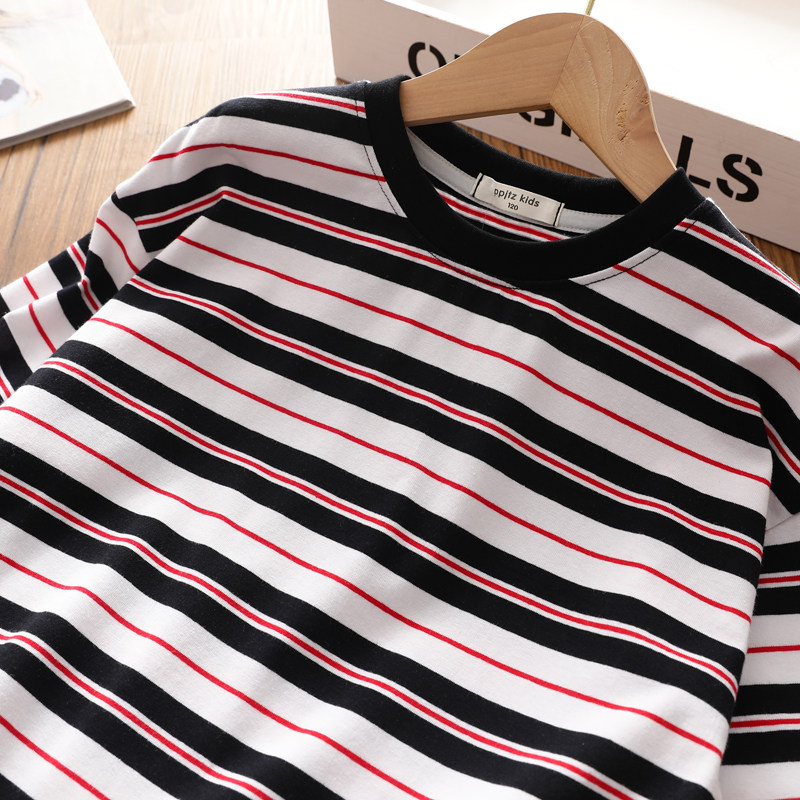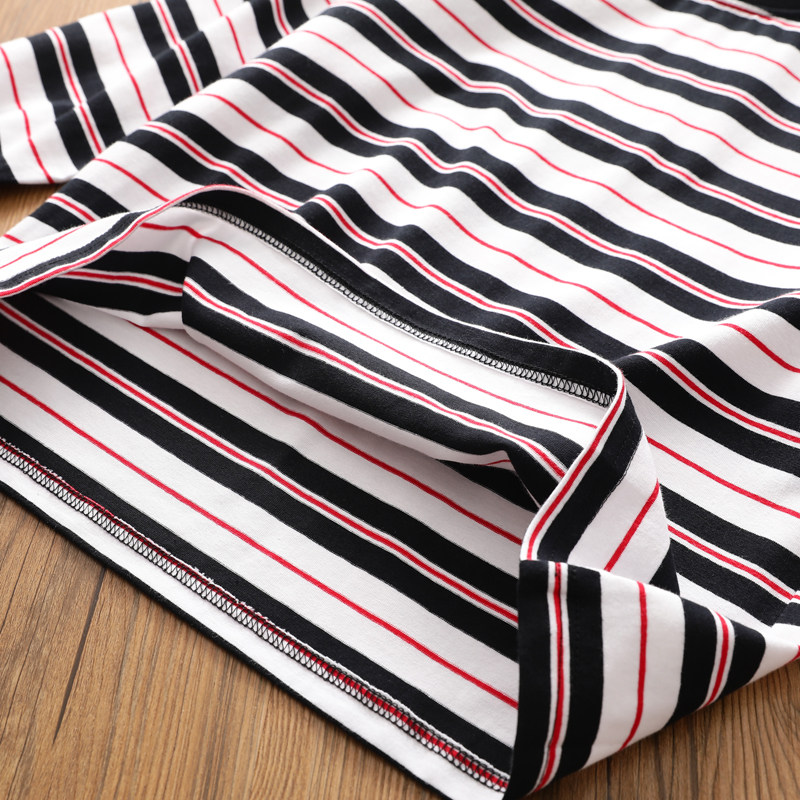 女童2025秋季新款中长款条纹T恤中大儿童纯棉薄款卫衣韩版打底衫