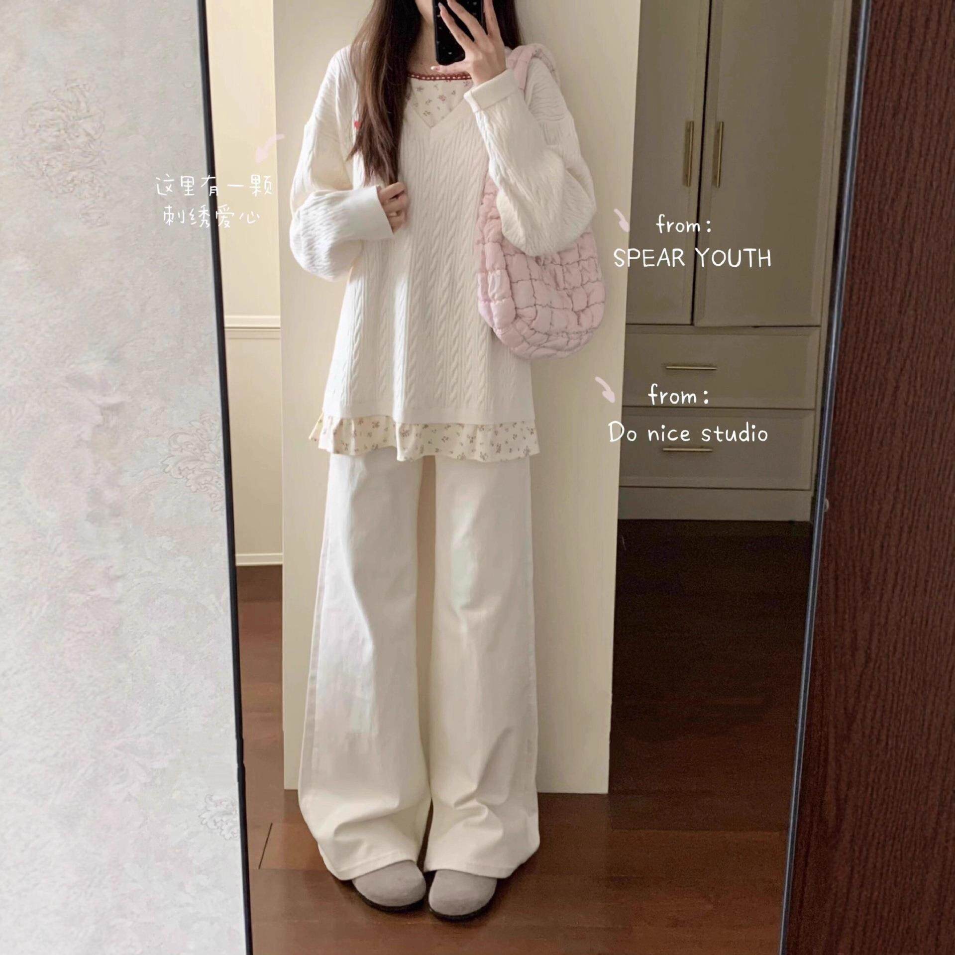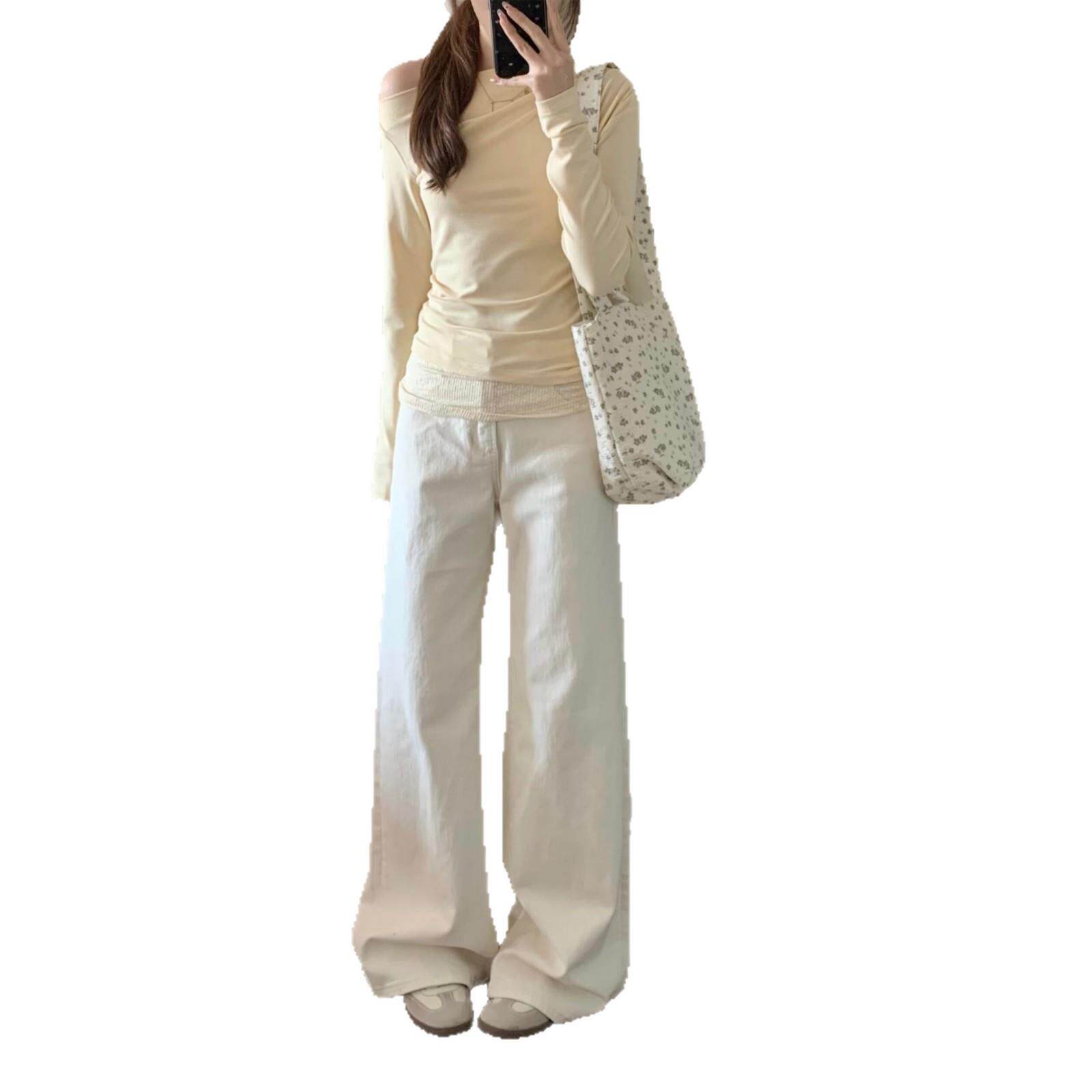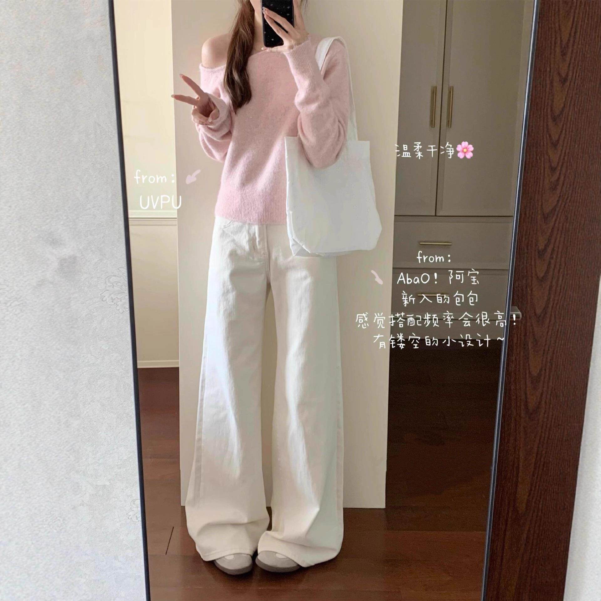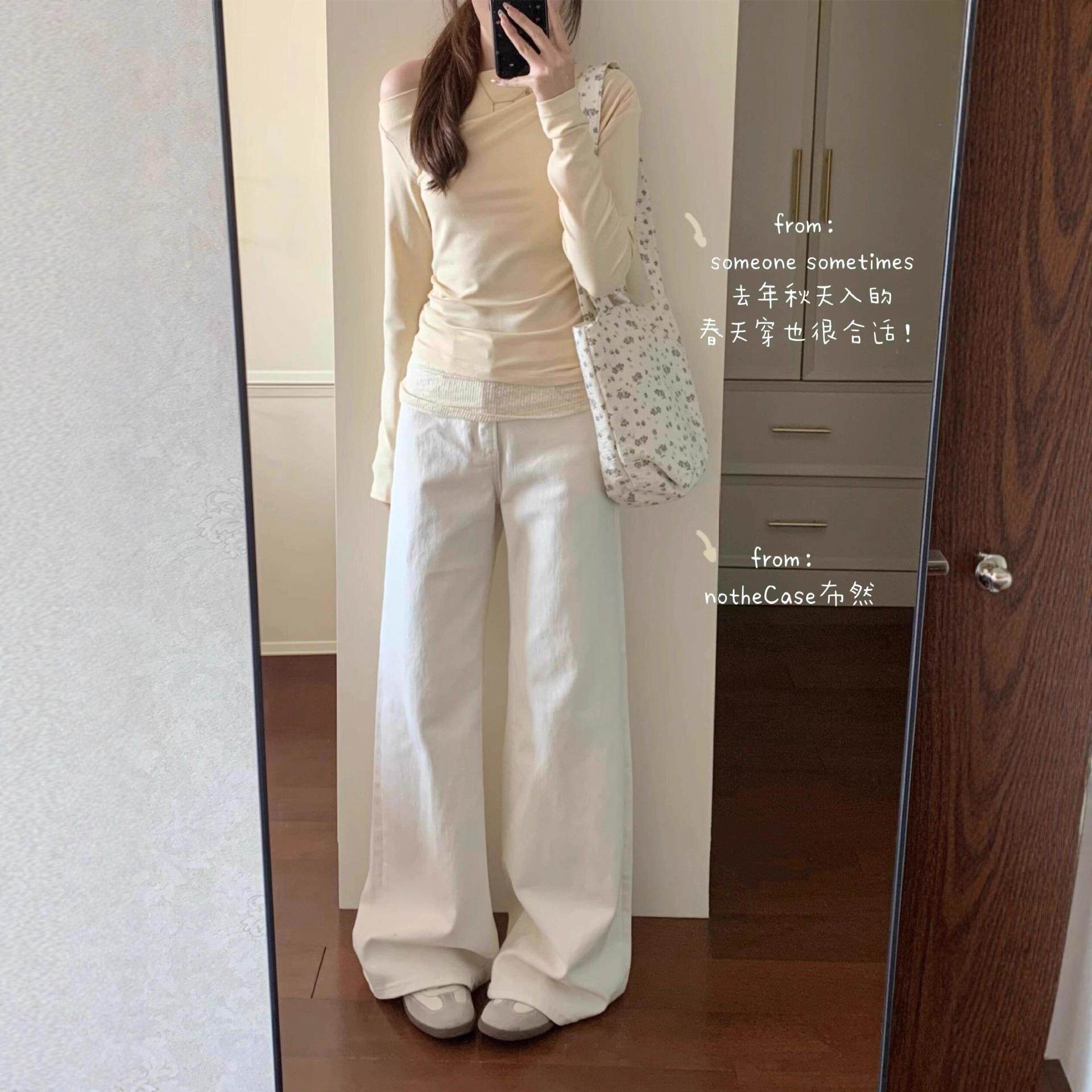 白色直筒牛仔裤女2026春季新款小个子休闲百搭显瘦阔腿宽松裤子
