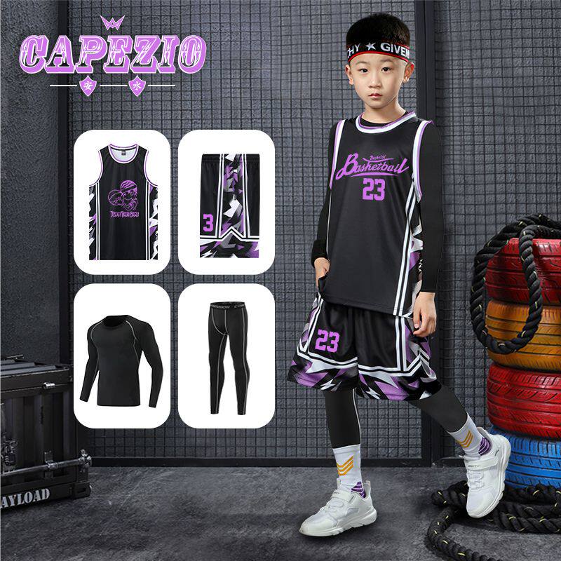 儿童篮球服套装男童秋冬季幼儿园比赛训练服打底内搭紧身衣四件套