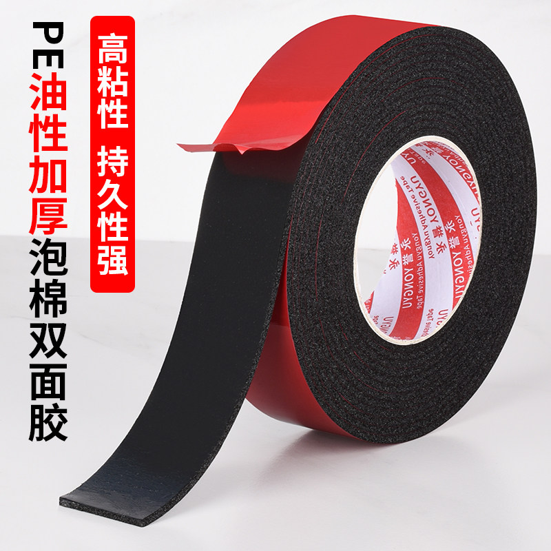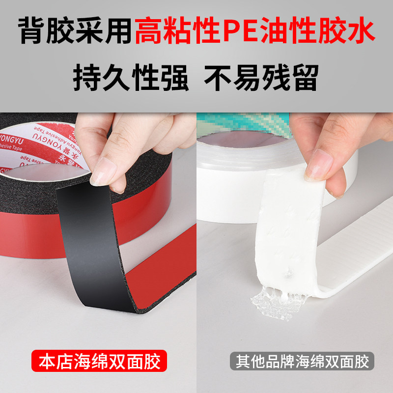 强力海绵双面胶高粘度加厚泡沫广告铭牌影楼铝合金KT板不锈钢墙面固定外墙真石漆仿砖油性PE加粘黑色泡棉胶贴