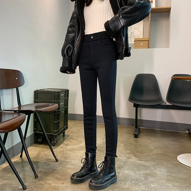 加厚加绒打底裤女外穿冬季加长款高个子高腰显瘦超厚小脚铅笔裤子