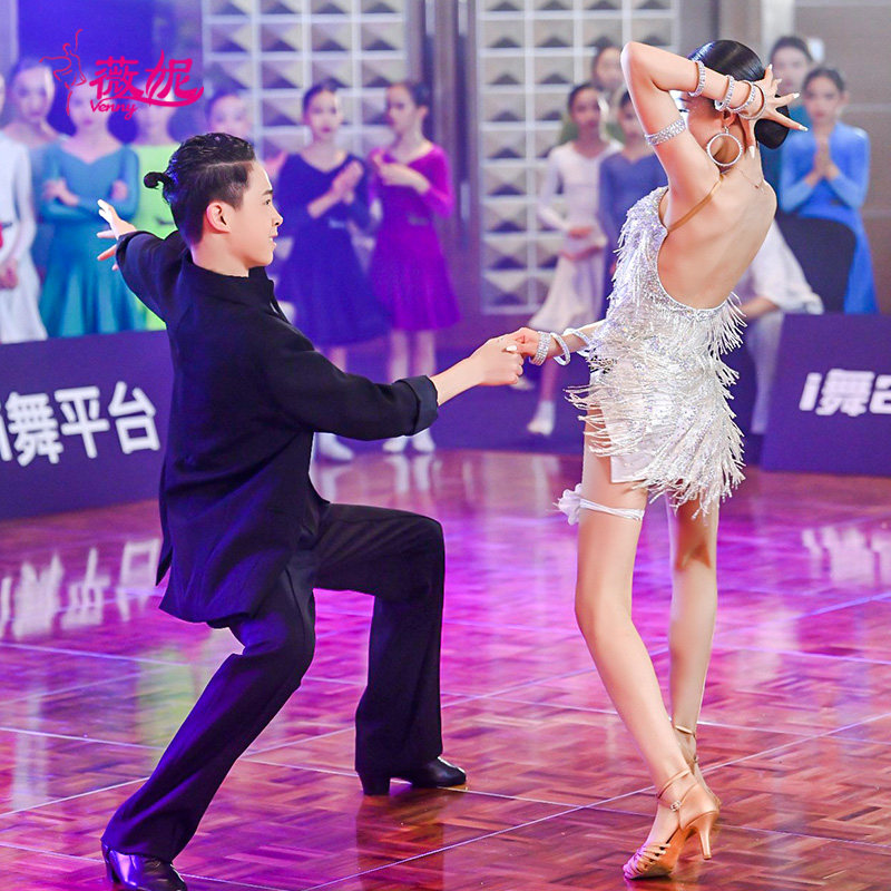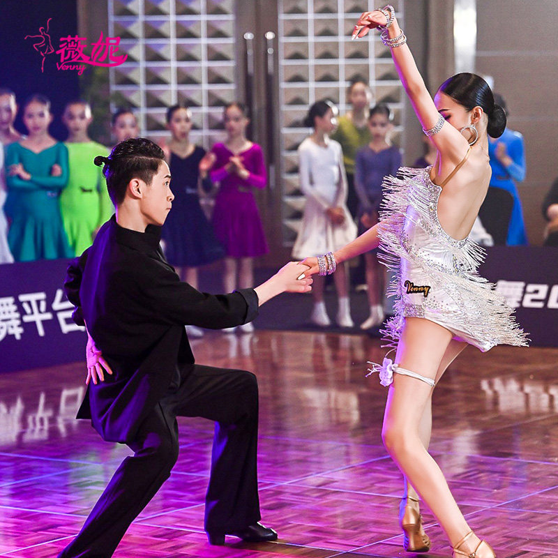 薇妮拉丁舞比赛花服专业女成人进口点金高级定制镶钻新款国标舞裙