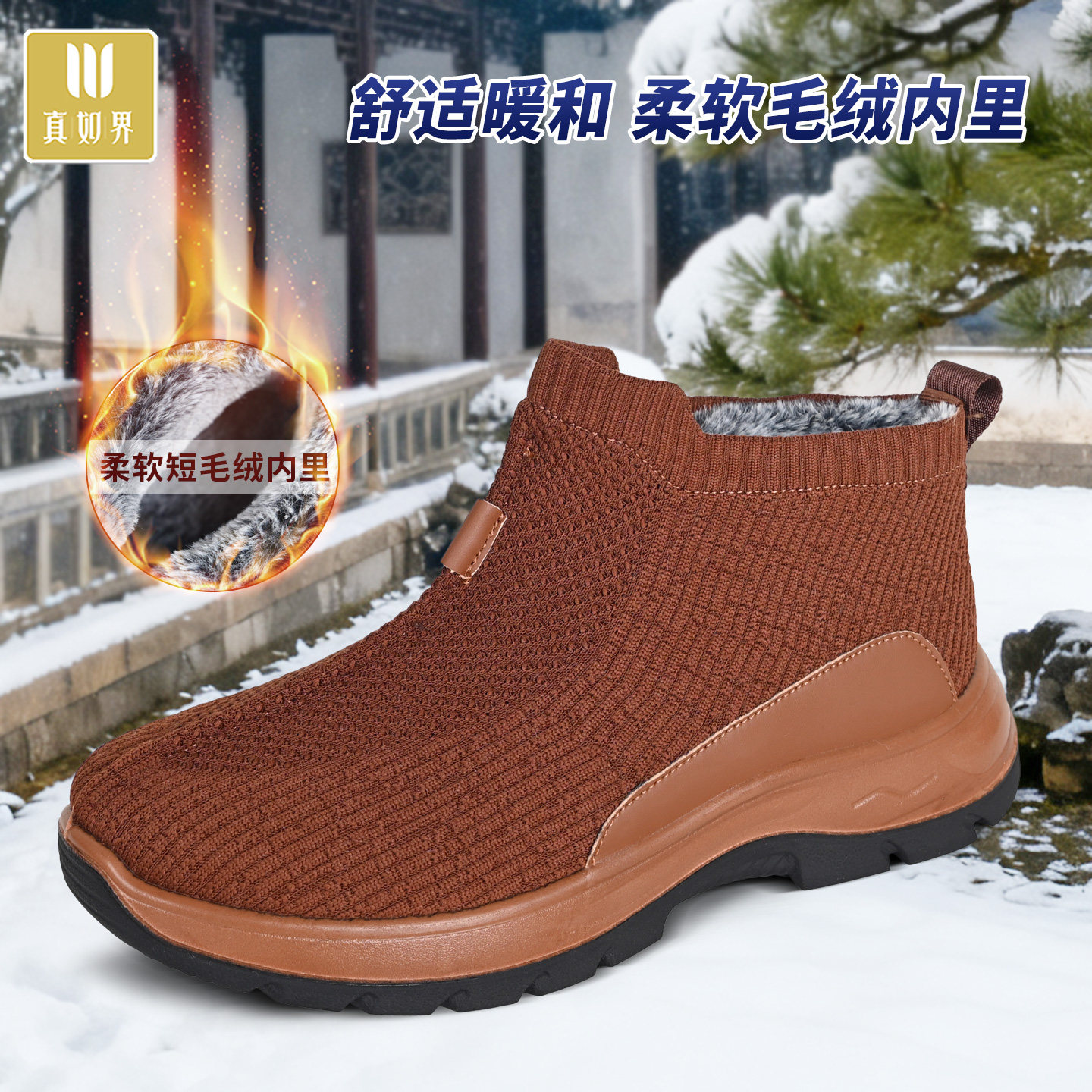 真如界冬季加绒棉鞋保暖鞋一脚蹬禅意居士鞋僧鞋厚底男女款二棉鞋