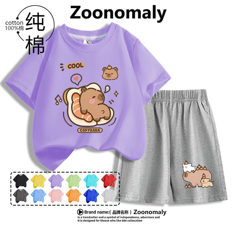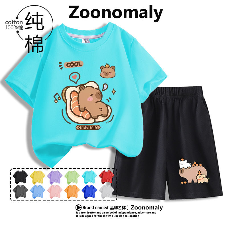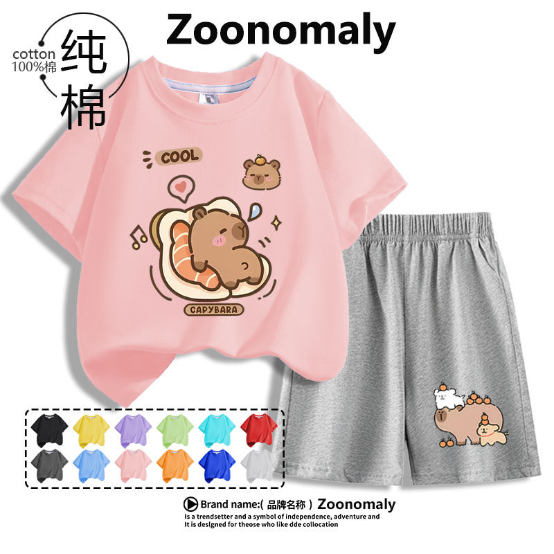 卡皮巴拉衣服女童夏季套装2025新款儿童洋气纯棉短袖T恤两件夏装6