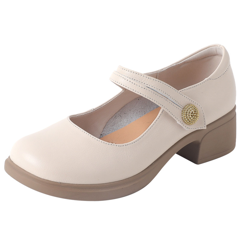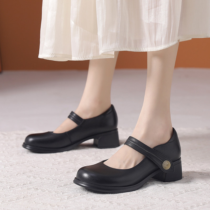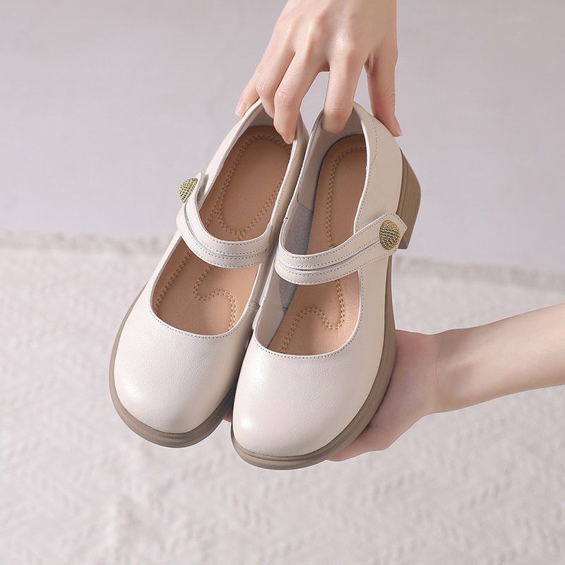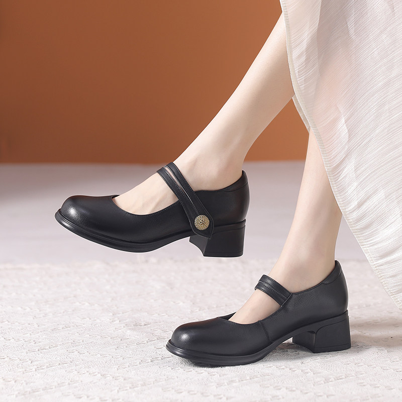 真皮软底粗跟玛丽珍女鞋2026新款春夏不累脚妈妈鞋百搭浅口单鞋子