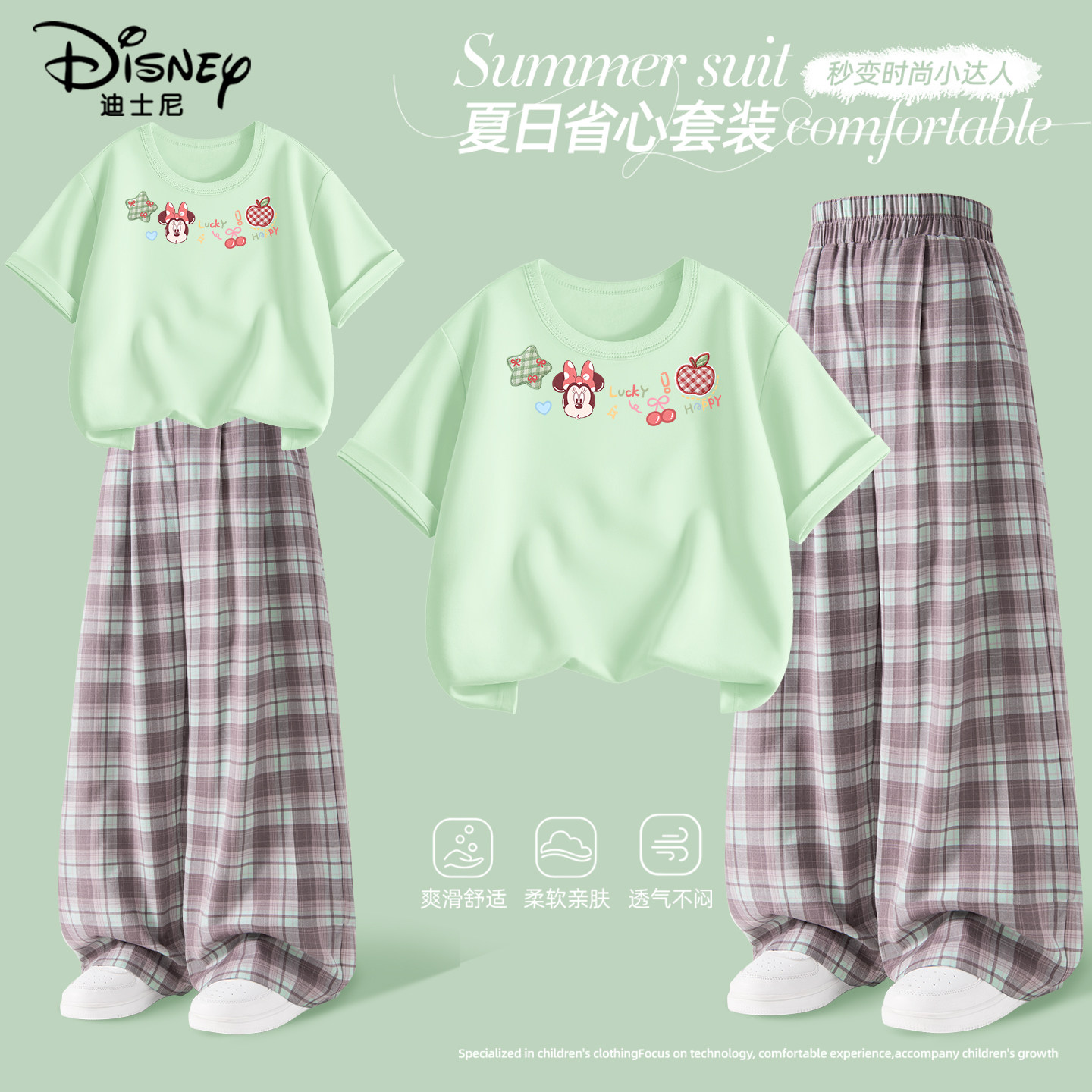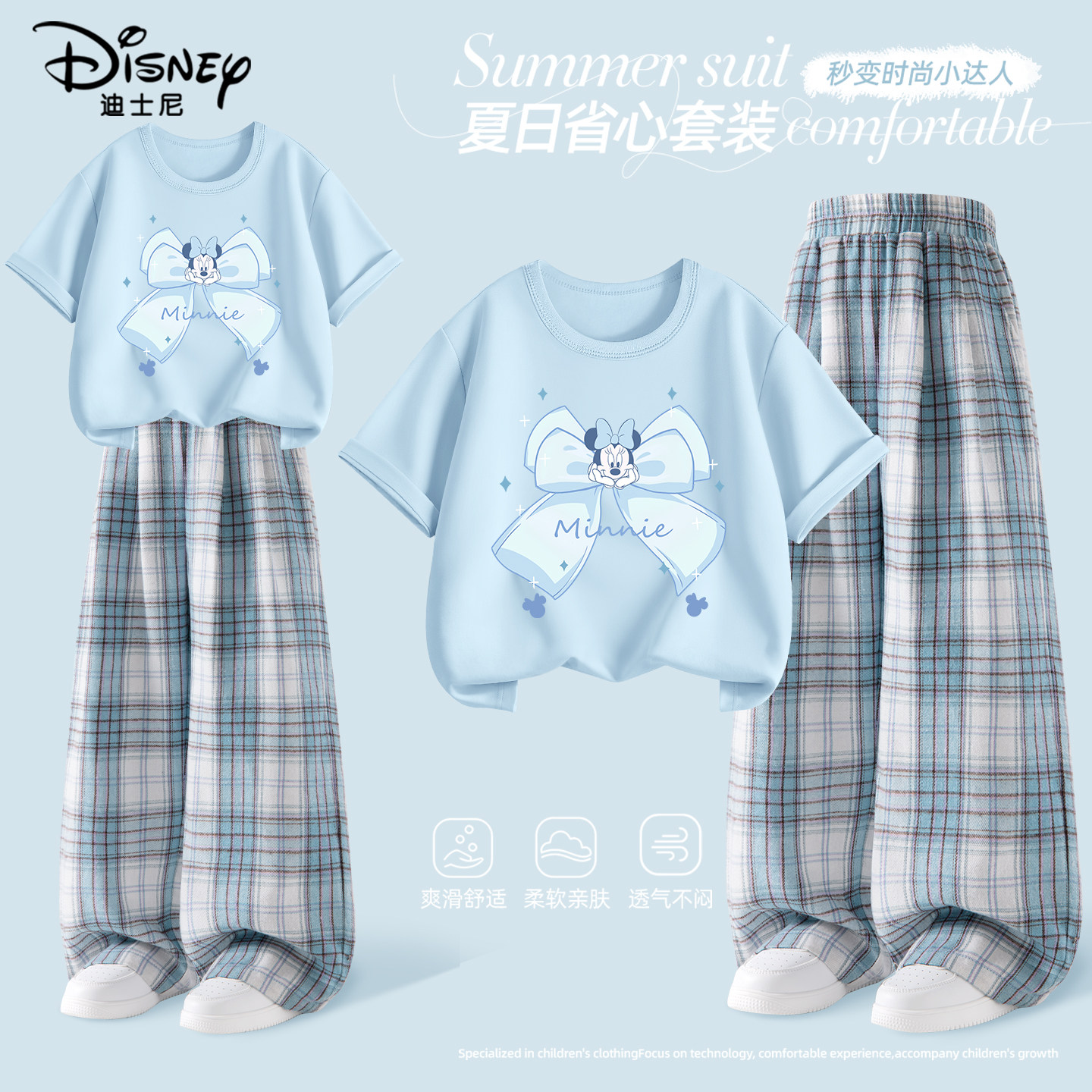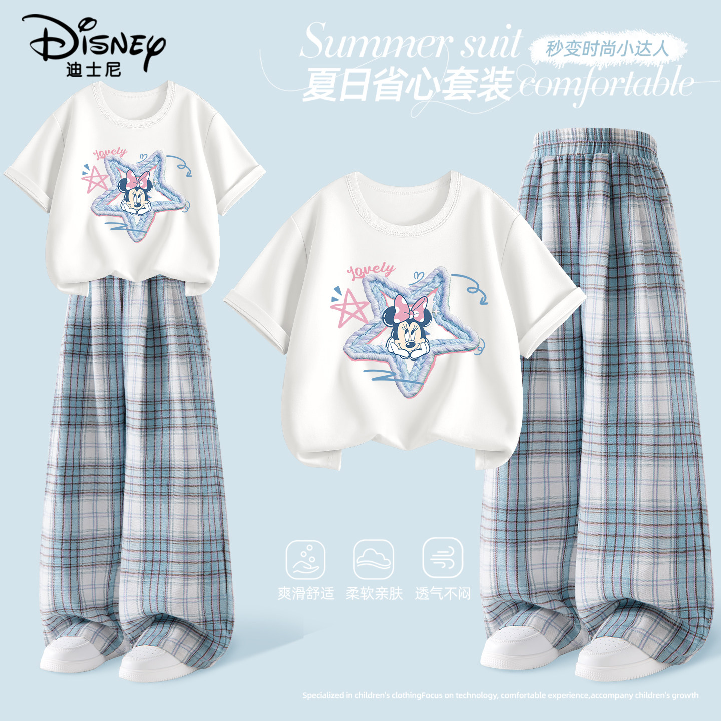 迪士尼女童夏季套装2026新款洋气女孩短袖薄款裤子儿童夏装衣服潮