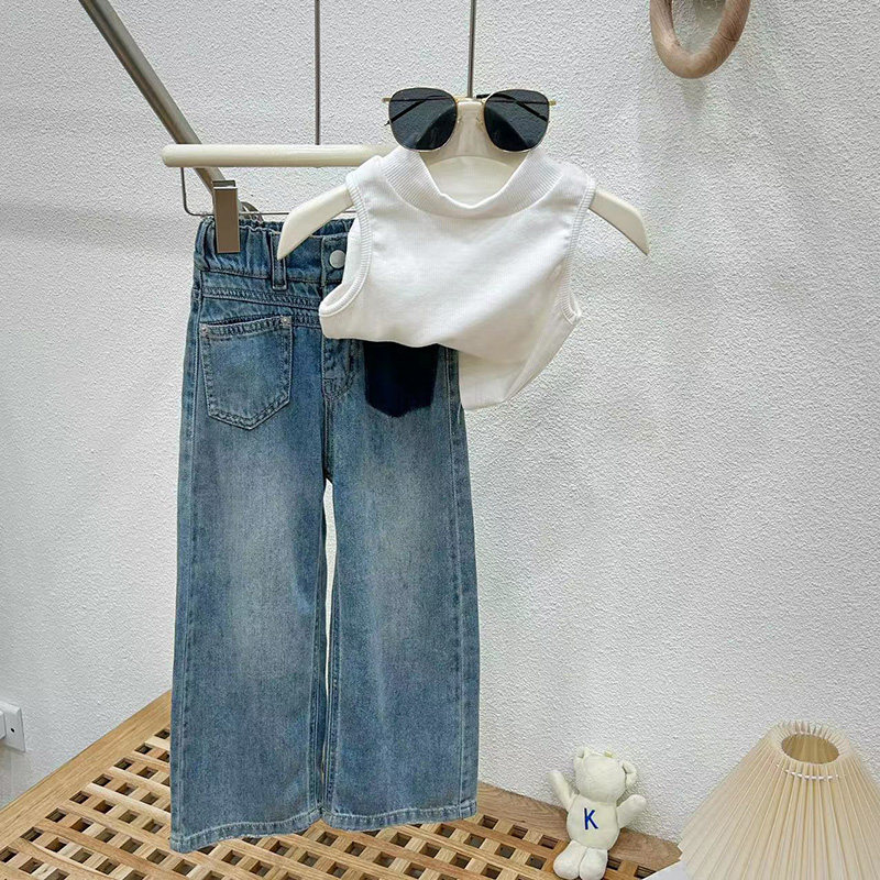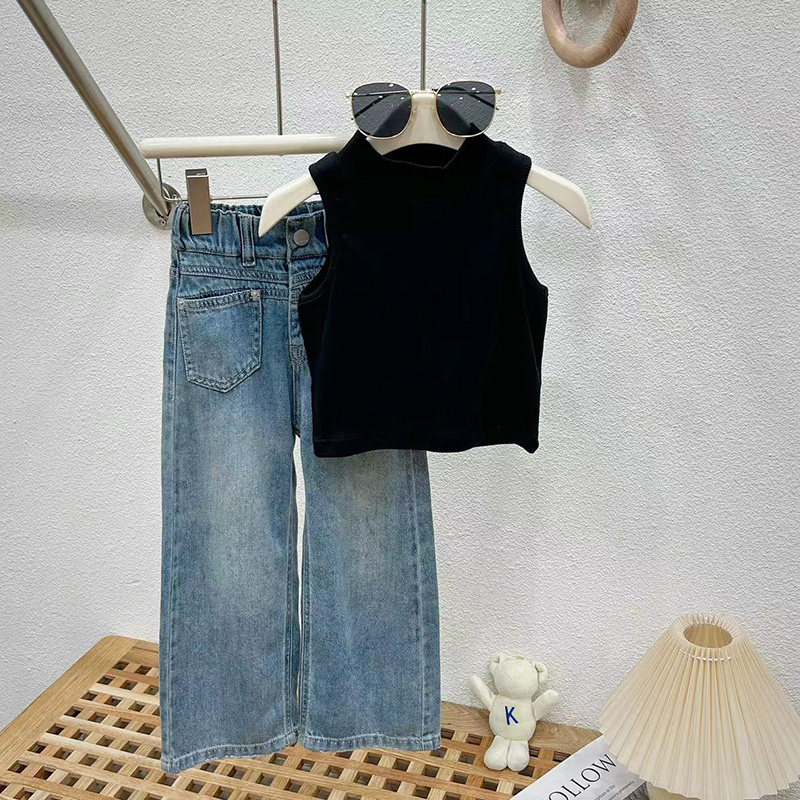 女童套装夏季牛仔裤薄款2026新款洋气时髦大童背心阔腿裤子两件套