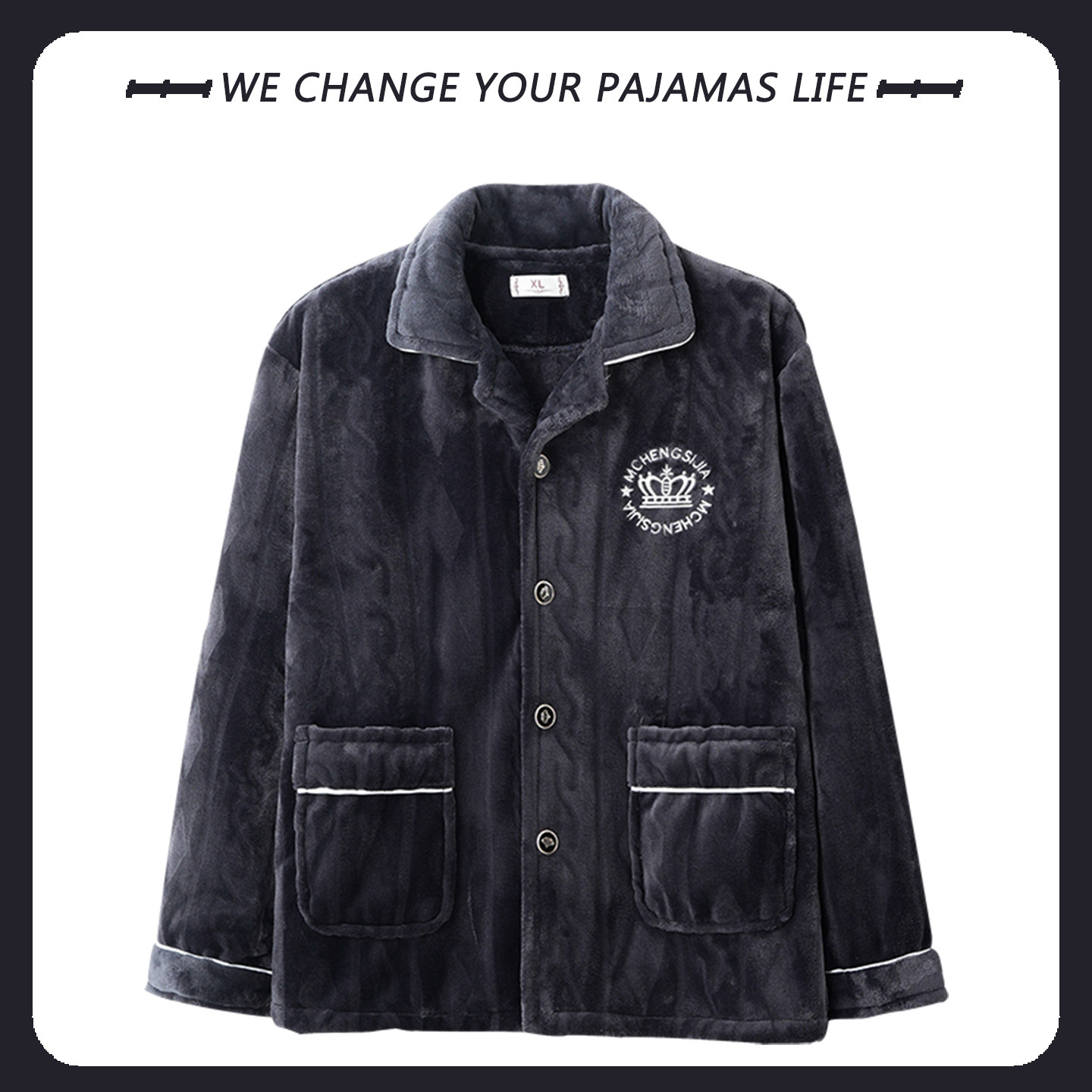 加绒加厚男士睡衣上衣单件冬季2025新款珊瑚绒长袖冬天保暖法兰绒