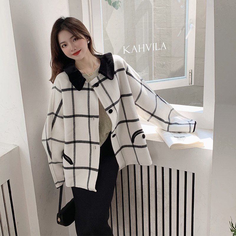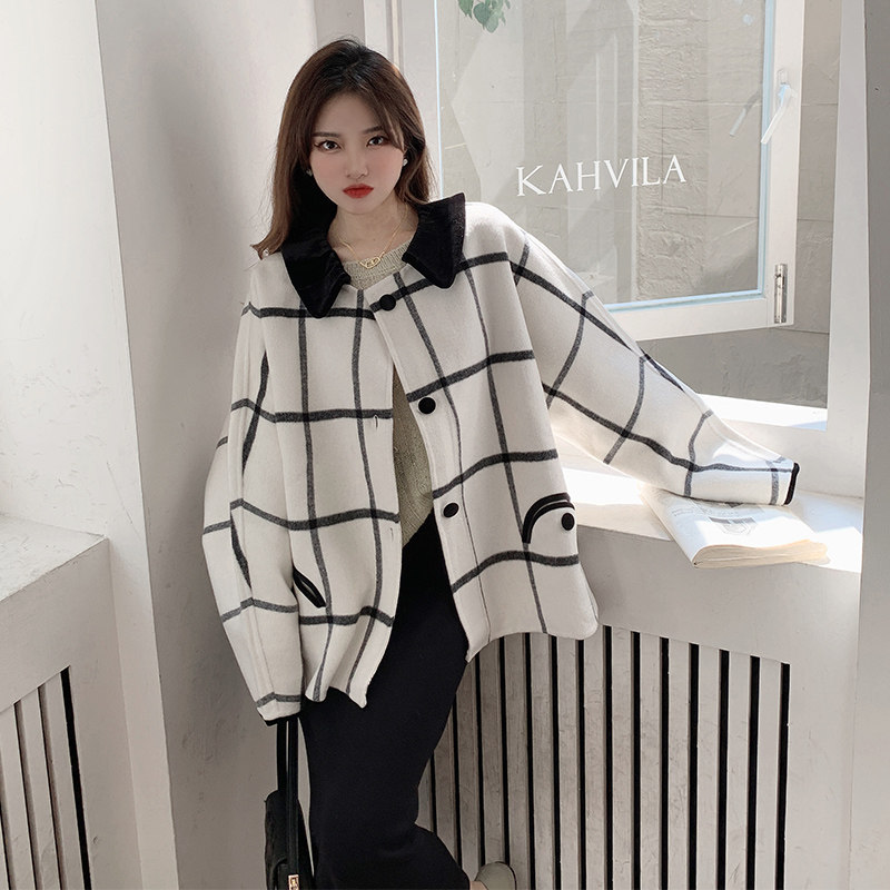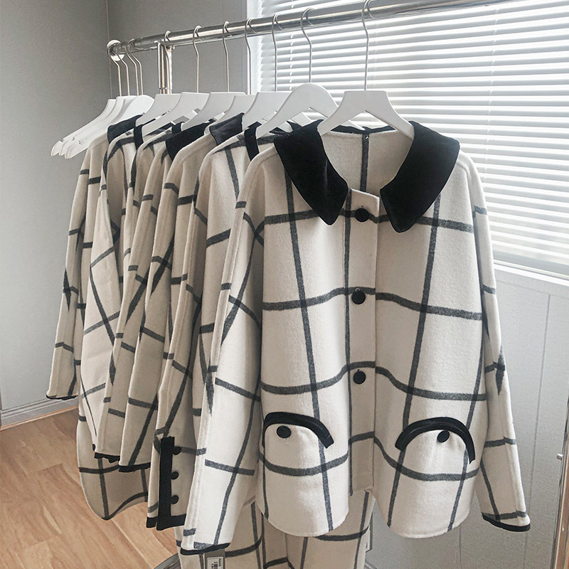 秋季2026新款双面羊绒大衣女中长款格子羊毛呢外套短款秋冬
