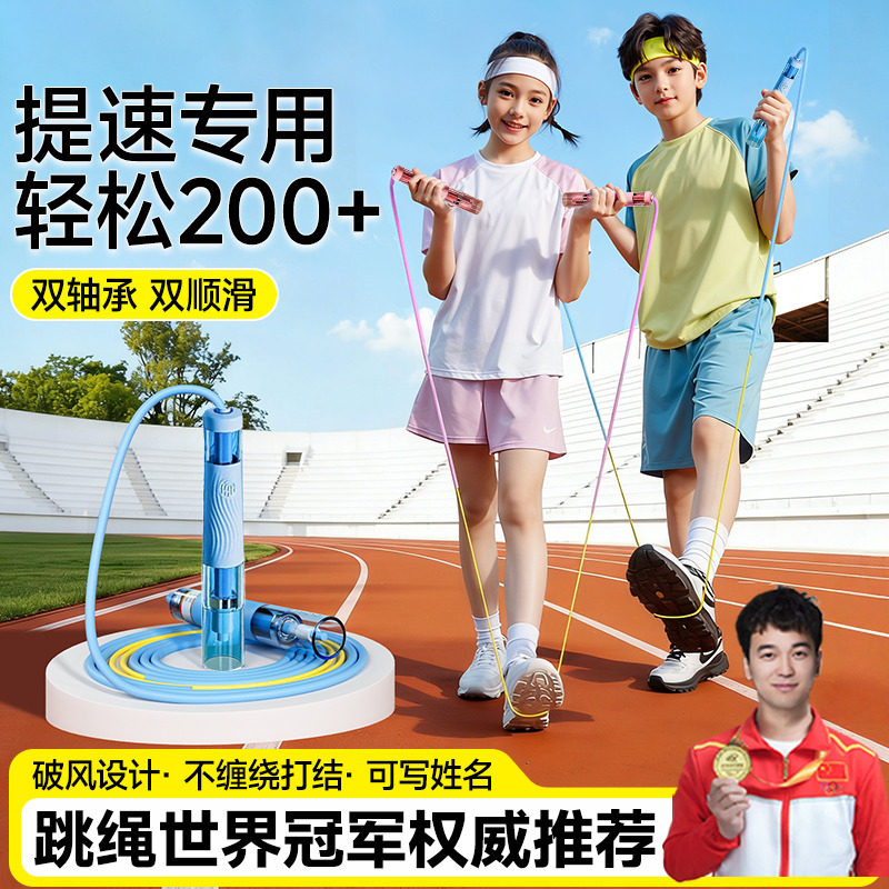 儿童跳绳竞速3.0双轴承跳绳小学生提速快初学体测中考专用不绕绳