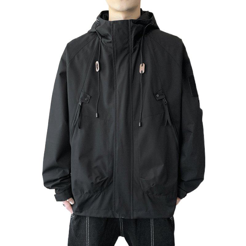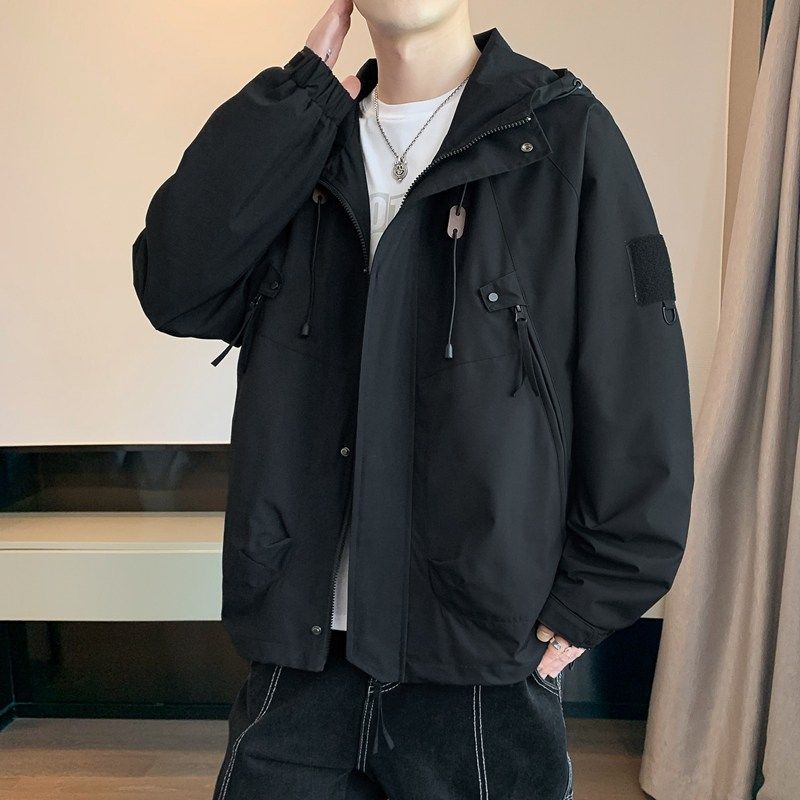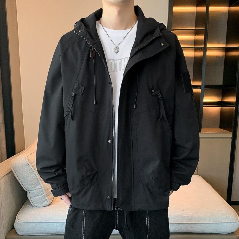 男士夹克休闲春秋季初高中大学生加大码高级感冲锋衣连帽工装外套