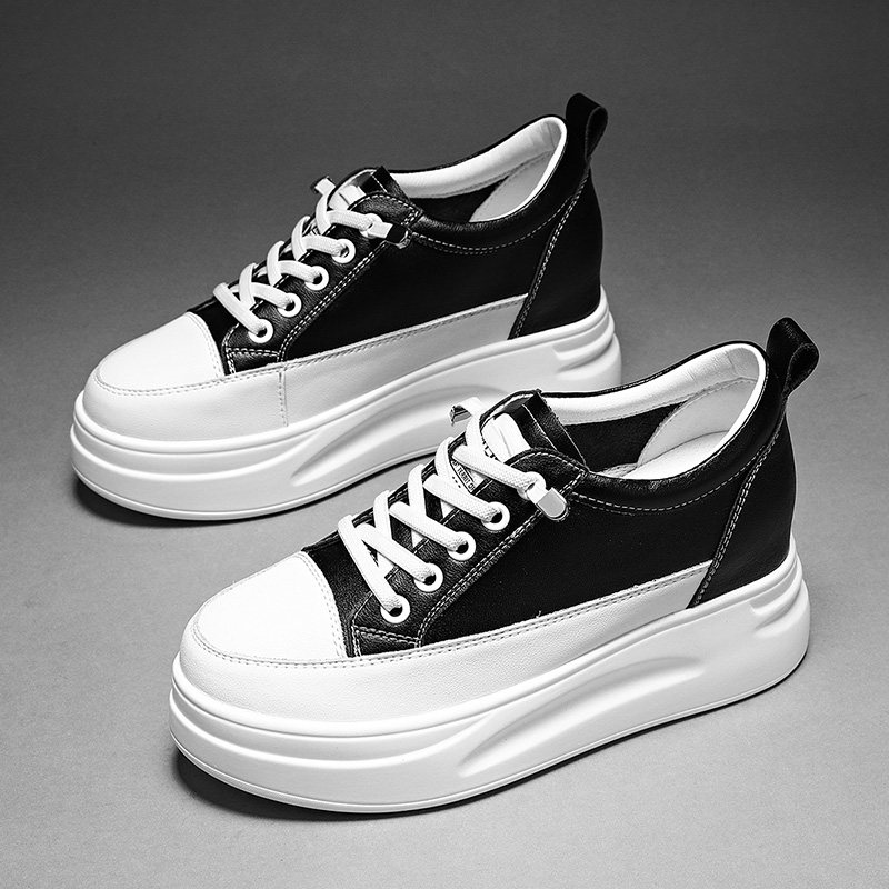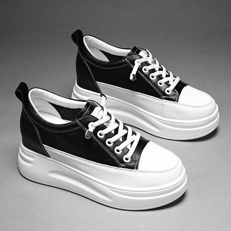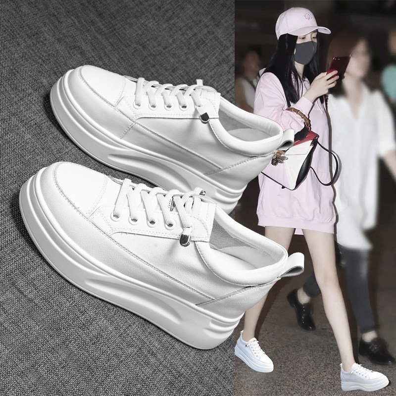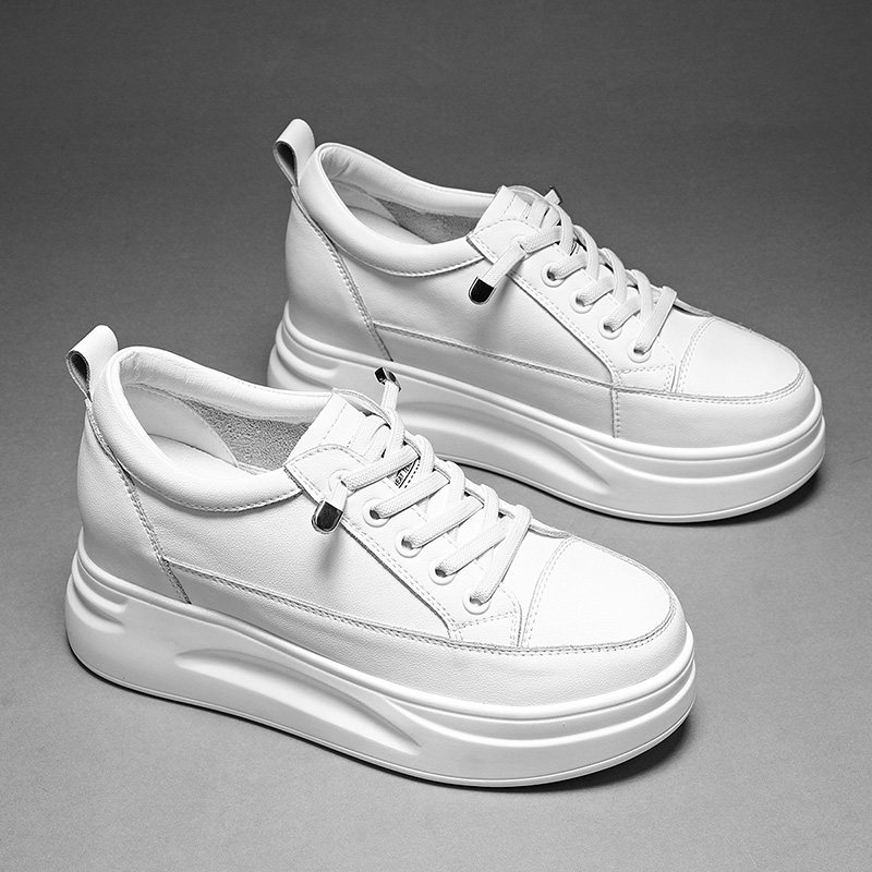 内增高小白鞋女2025新款春季真皮33码松糕鞋小个子百搭厚底女鞋