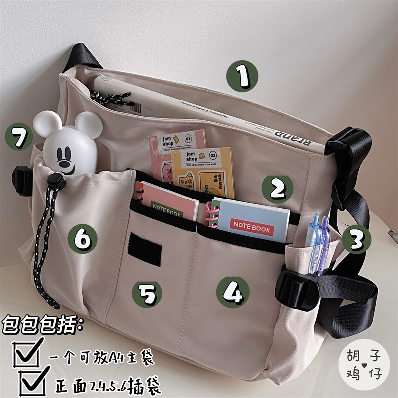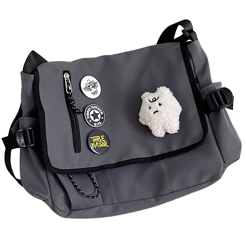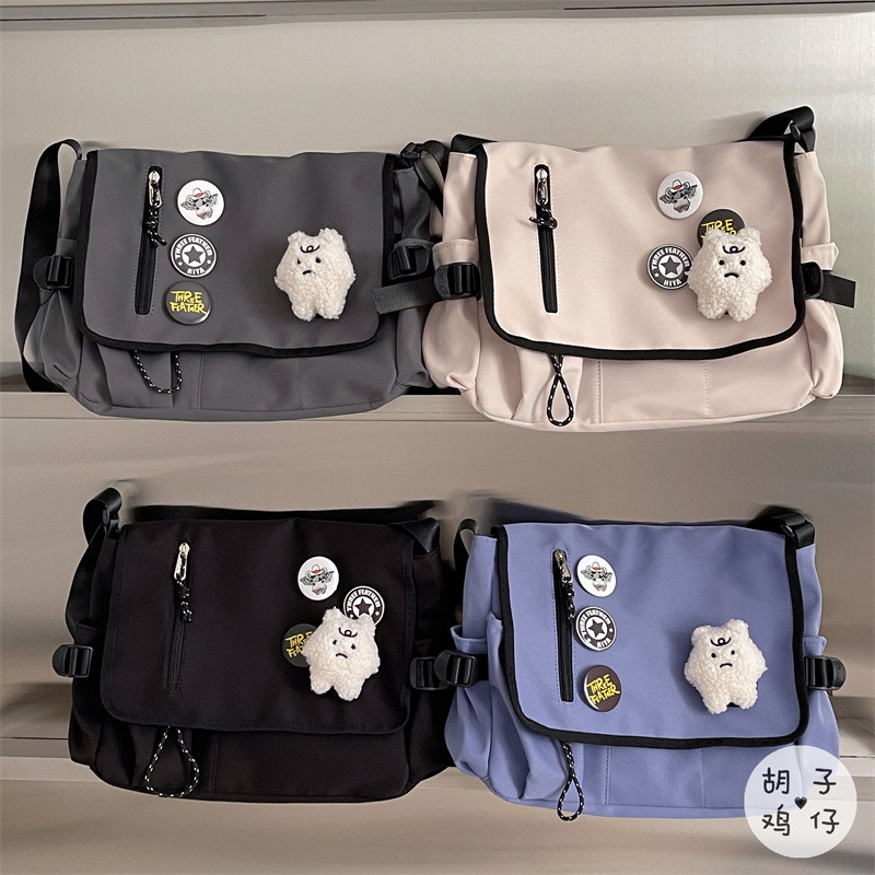 ins韩版复古工装潮搭邮差包男日系少女学生斜挎包大容量上课书包