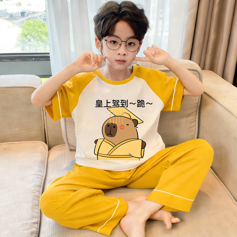 男童睡衣青少年纯棉短袖长裤春装大童卡通蛋仔儿童家居服男孩套装